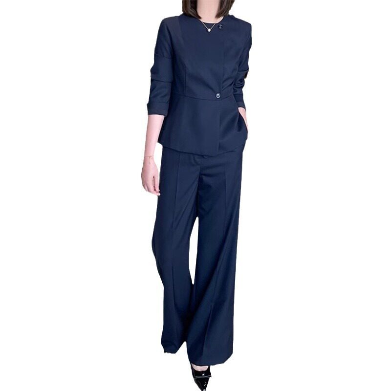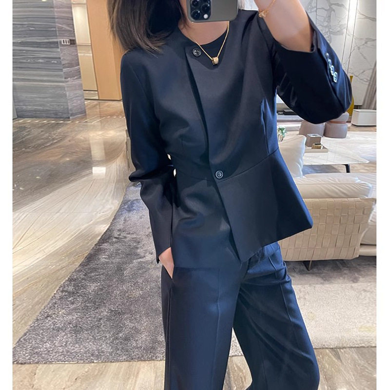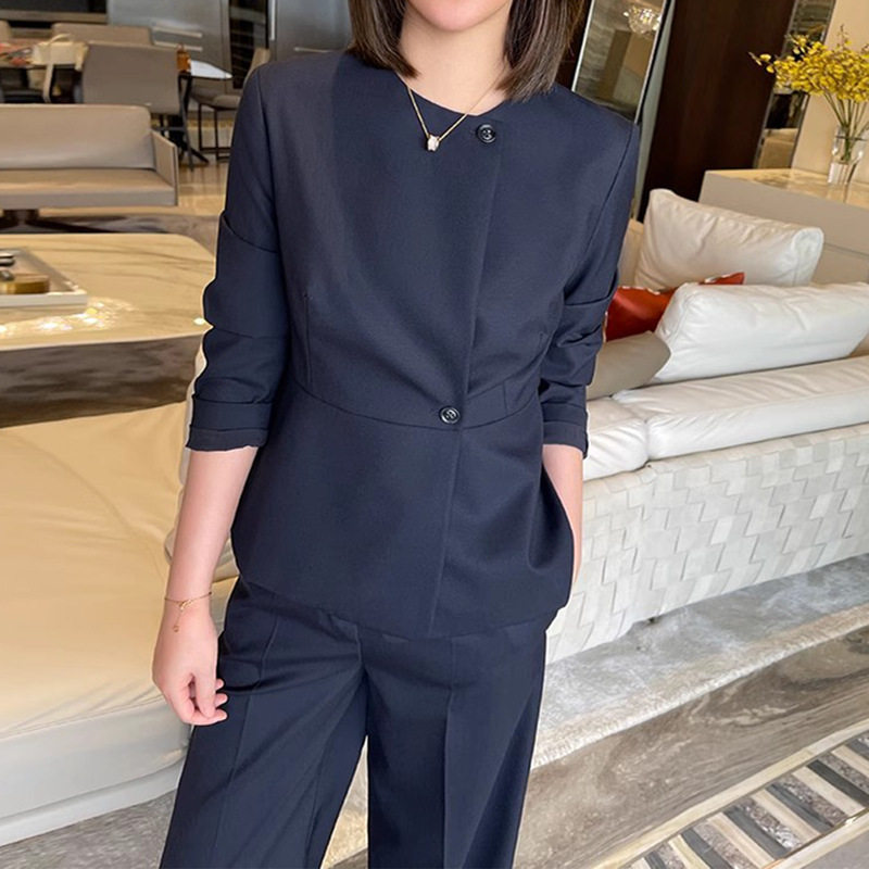 云端触感!纯色编织精纺羊毛套装 春秋气质西装外套+阔腿裤两件套