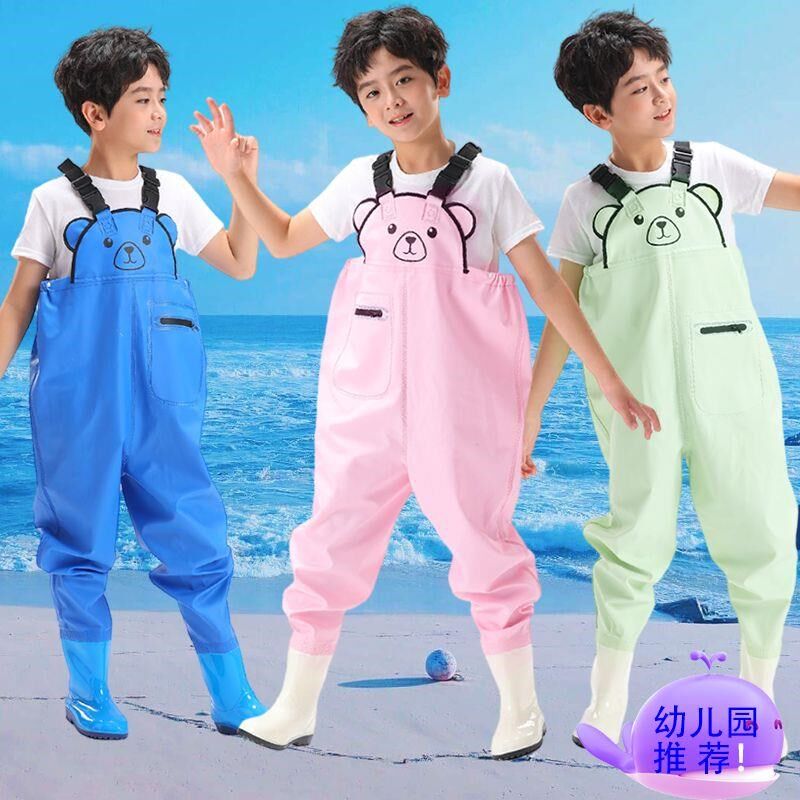 淘宝夏季玩水装备儿童下水裤防水赶海装备幼儿园玩沙水服连体雨鞋雨