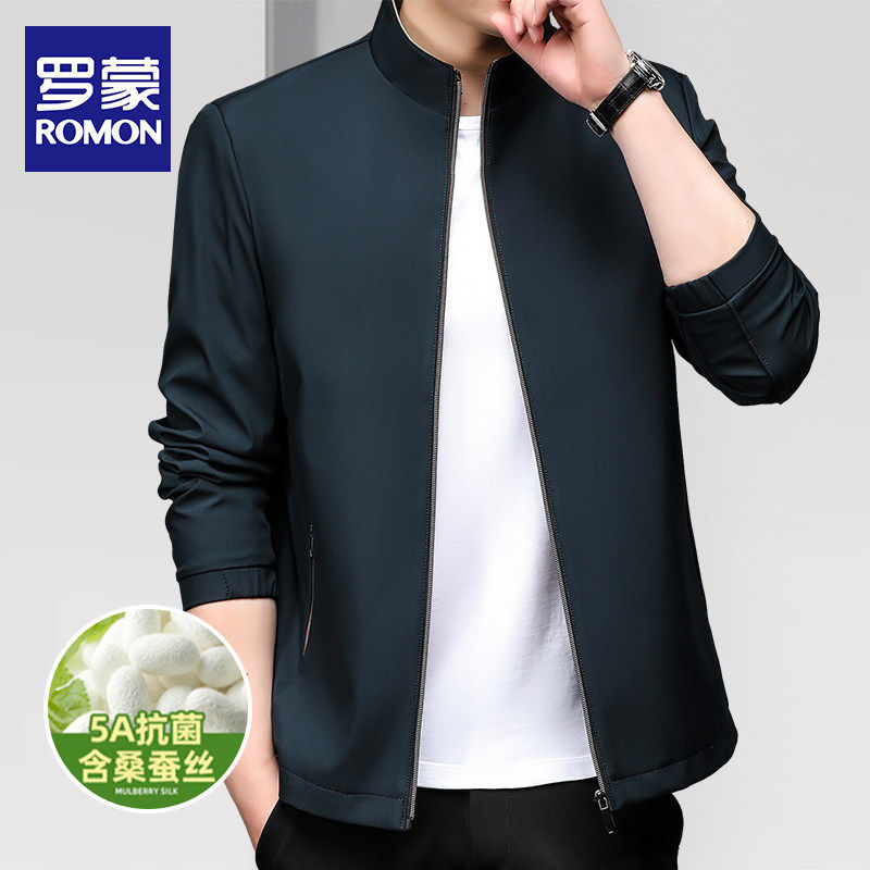 --------------------- 罗蒙立领春秋季休闲男士外套开衫五防桑蚕丝男士商务行者夹克上衣 【原售价】398元 【现售价】65.1元 【推荐理由】