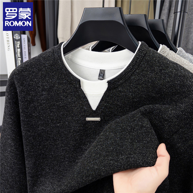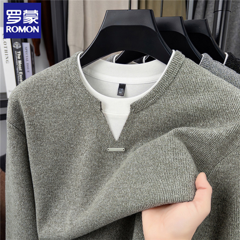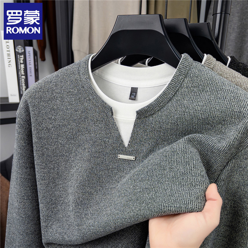 --------------------- 罗蒙假两件男士V领卫衣纯色宽松春秋季新款休闲风长袖套头针织衫 【原售价】298元 【现售价】113元 【推荐理由】