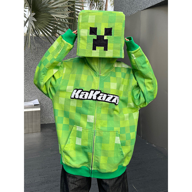 KAKAZZY搞怪连帽开衫卫衣男女春秋嘻哈国潮牌重磅hiphop拉链外套