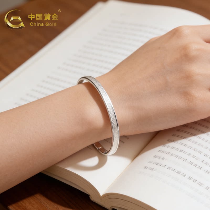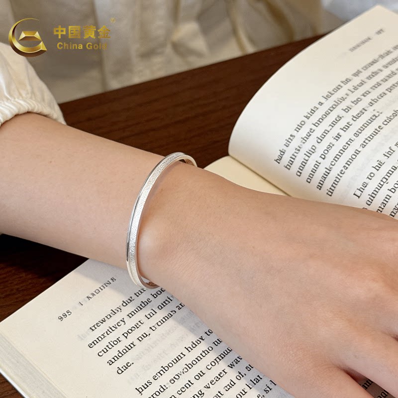 中国黄金手镯女足银999.9银凤钉沙成镯情人节生日送女友老婆