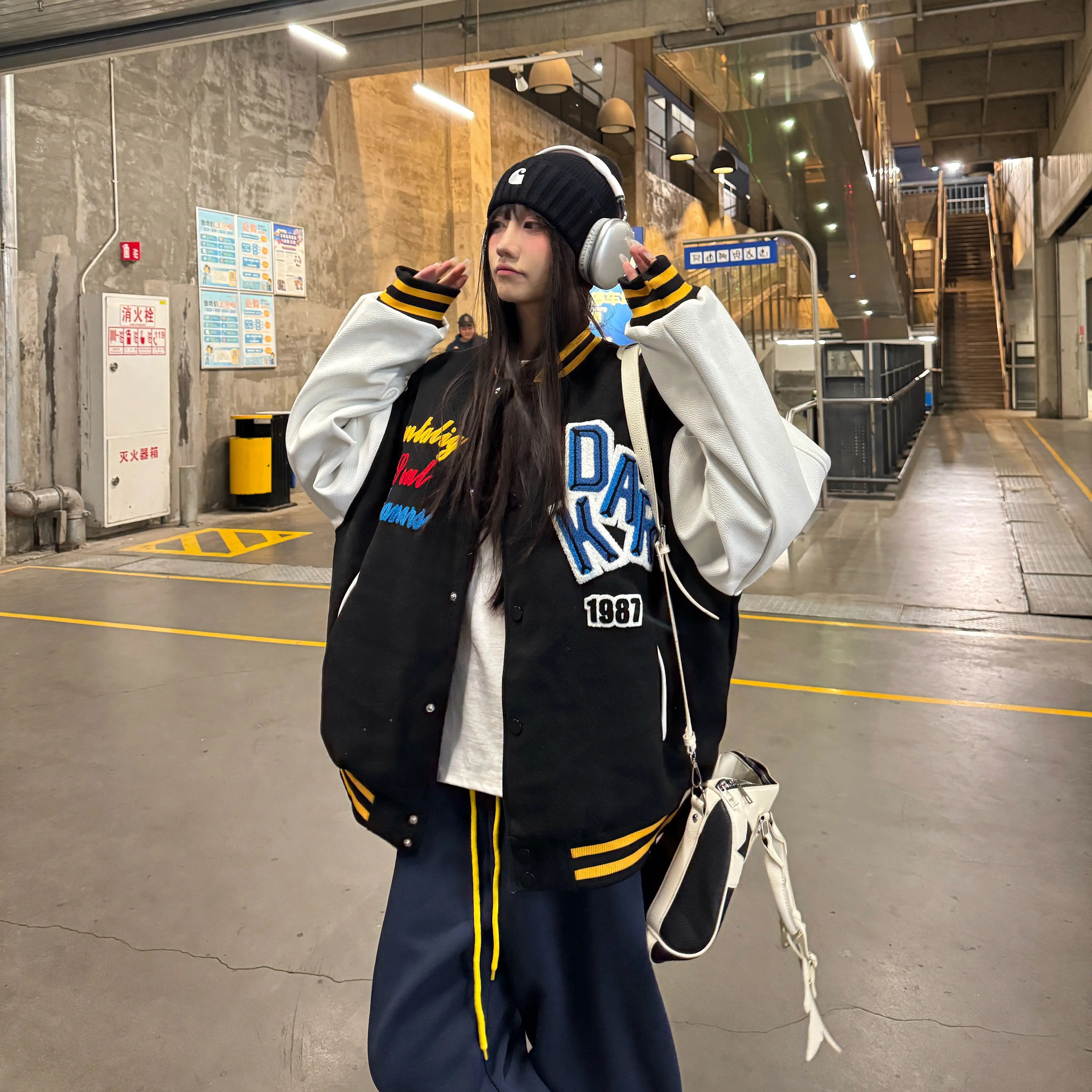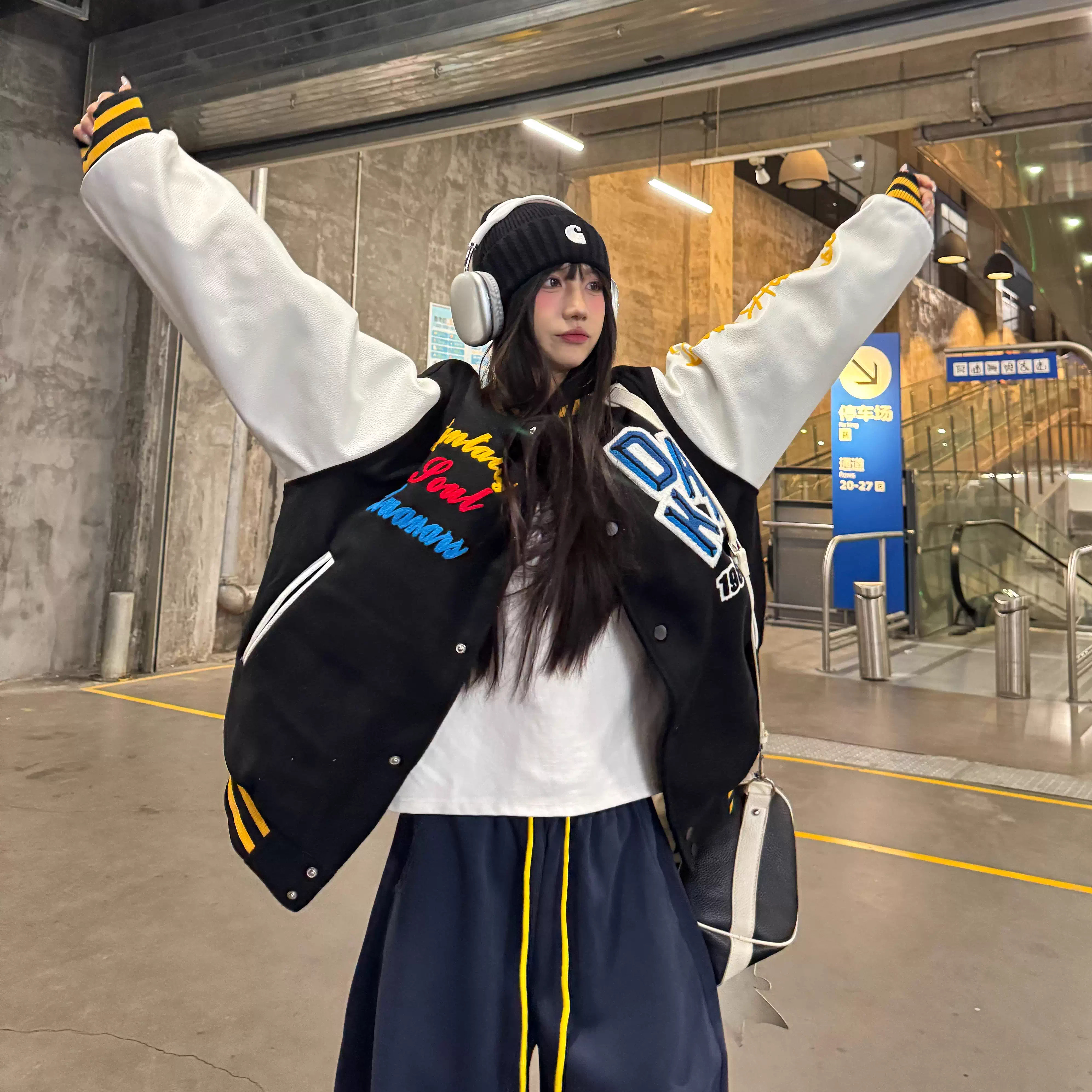 Amoeba原创国潮植绒刺绣字母棒球服2025春季新款夹棉加厚外套夹克
