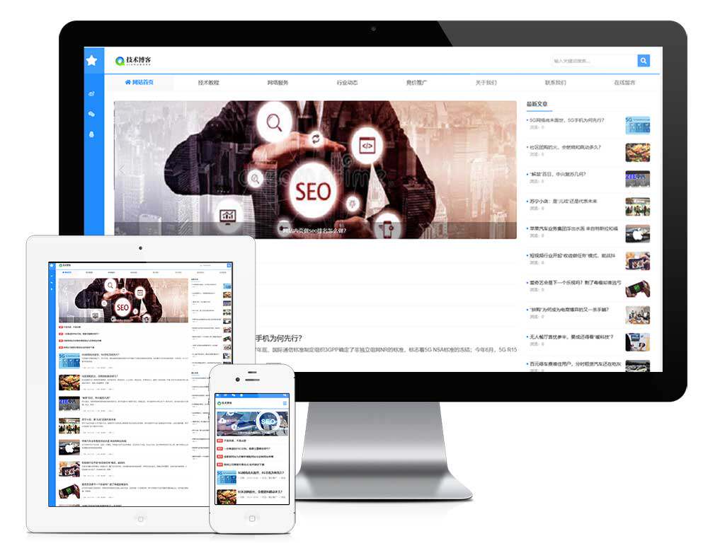 响应式技术博客新闻行业资讯类企业网站建设(正版授权模板源码)