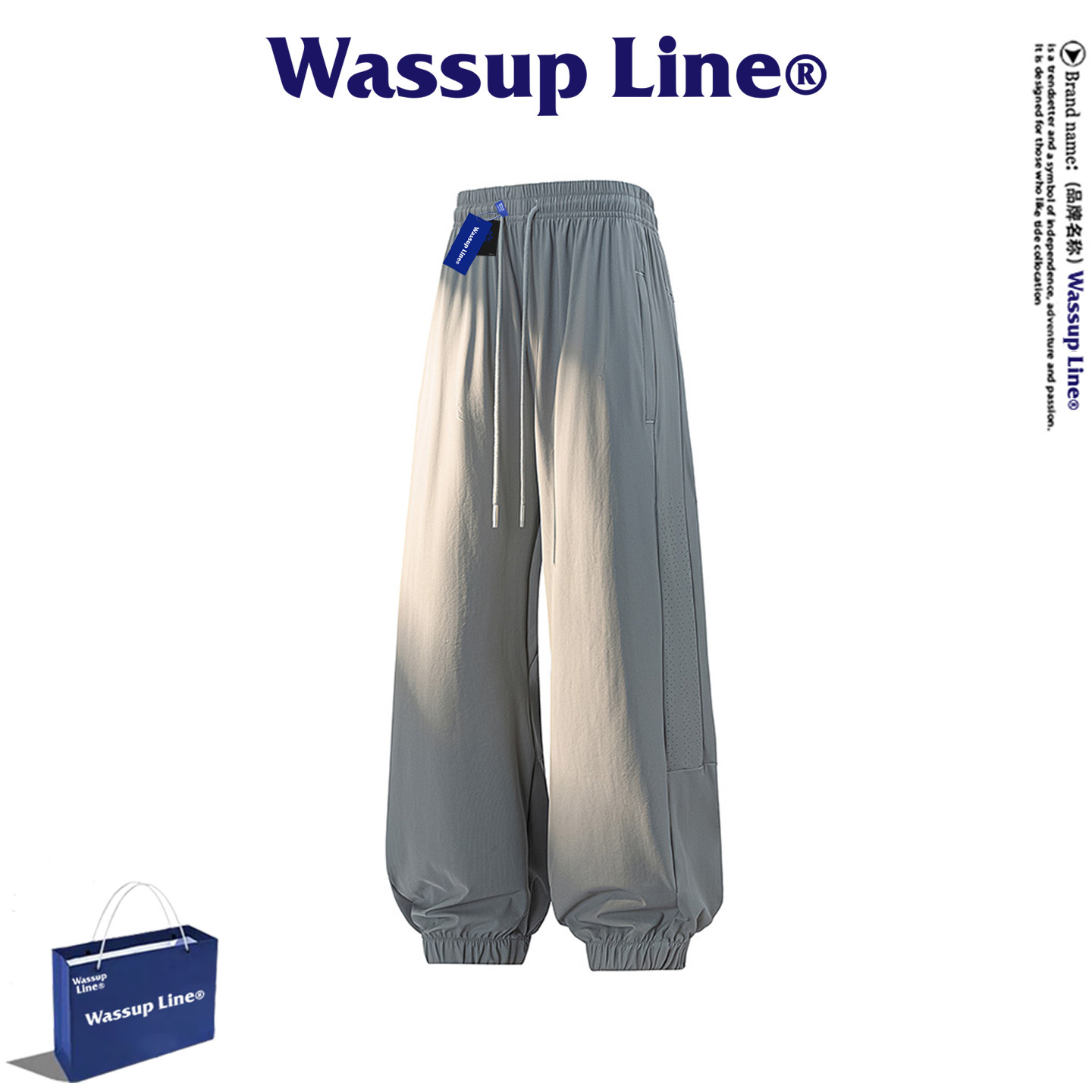WASSUP Line潮牌时尚休闲裤男夏季简约百搭束脚裤宽松冰丝长裤