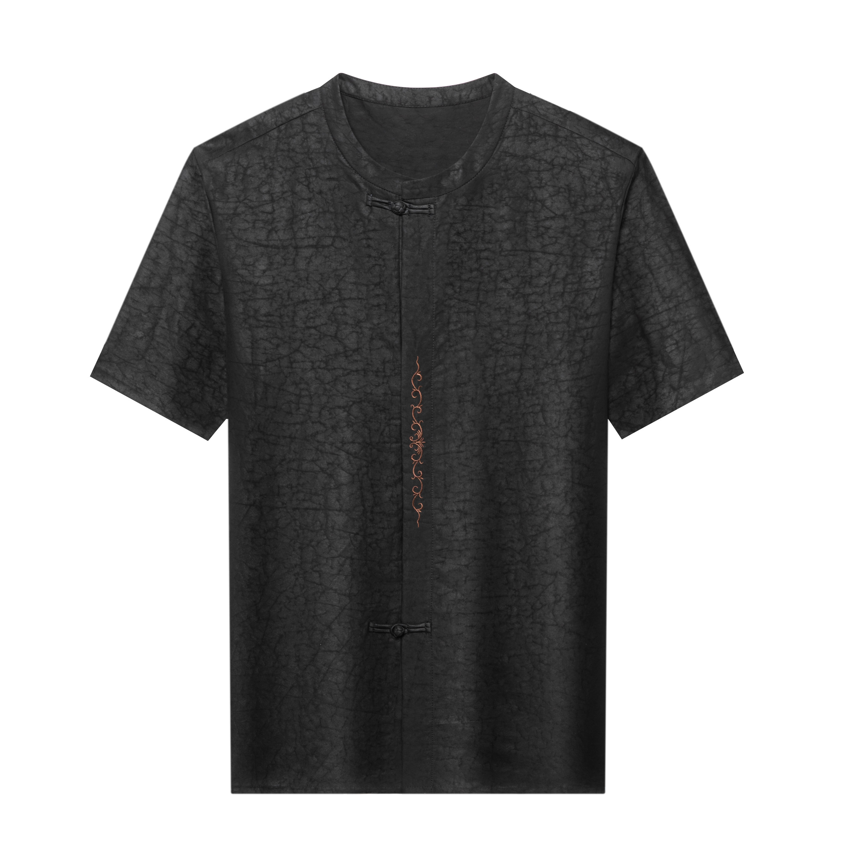 狄斯仑中国风香云纱龟裂纹立领短袖唐装男士夏季桑蚕丝新中式T恤