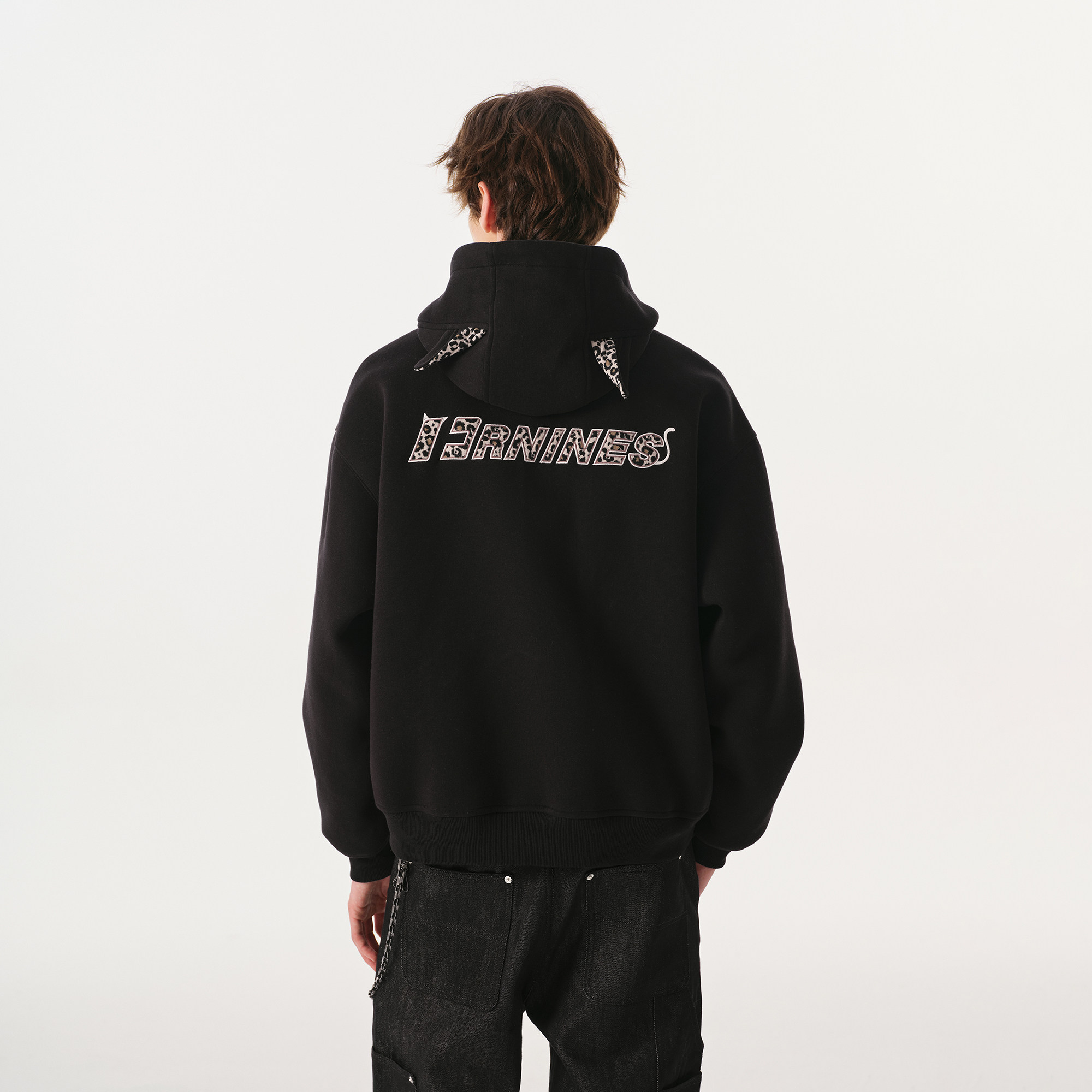 FORNINES重磅豹纹连帽耳朵开衫卫衣男款国潮情侣装休闲帽衫外套女