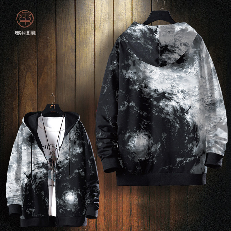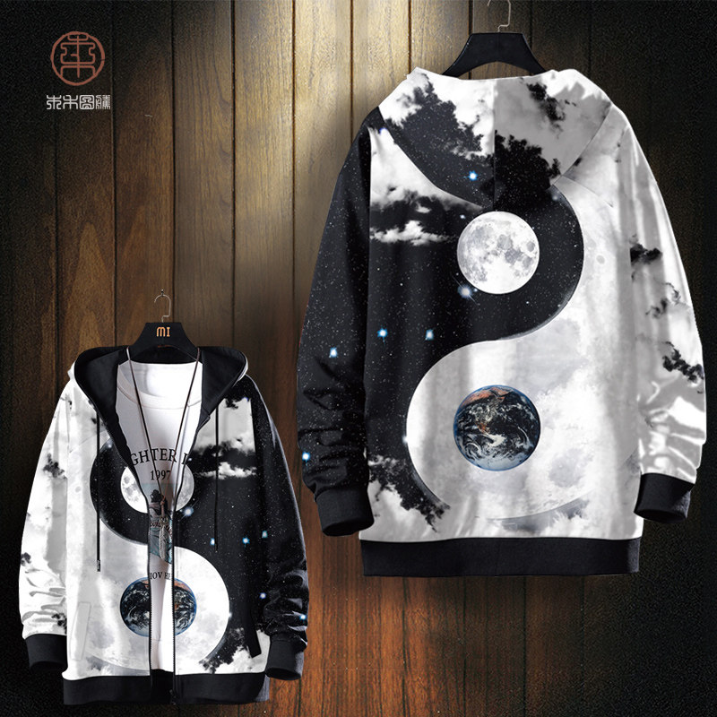 中国风卫衣男士连帽国潮外套秋冬季新款帽衫加绒加厚太极八卦衣服