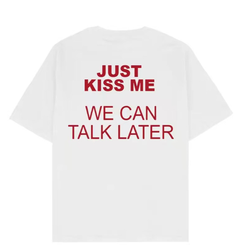 just kiss me we can talk later美式趣味搞笑短袖T恤男女字母潮