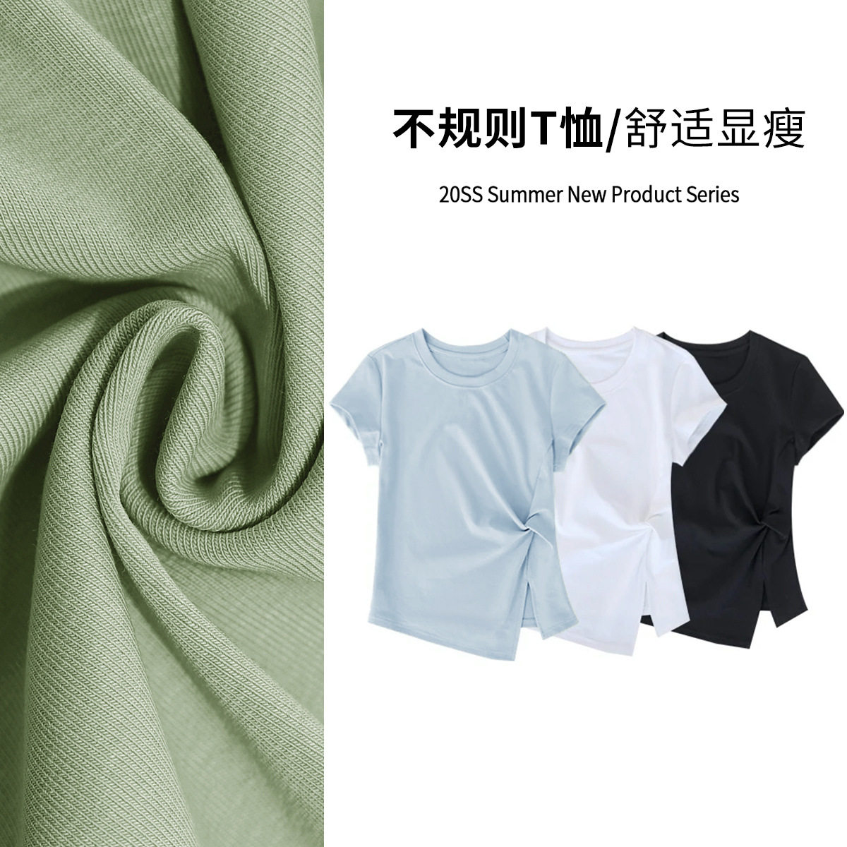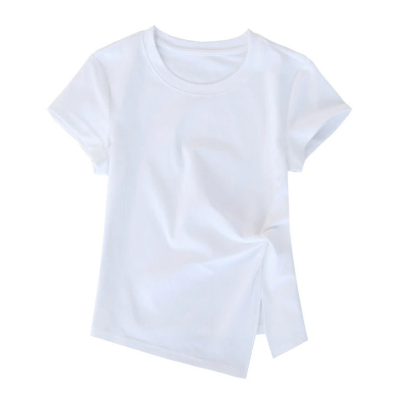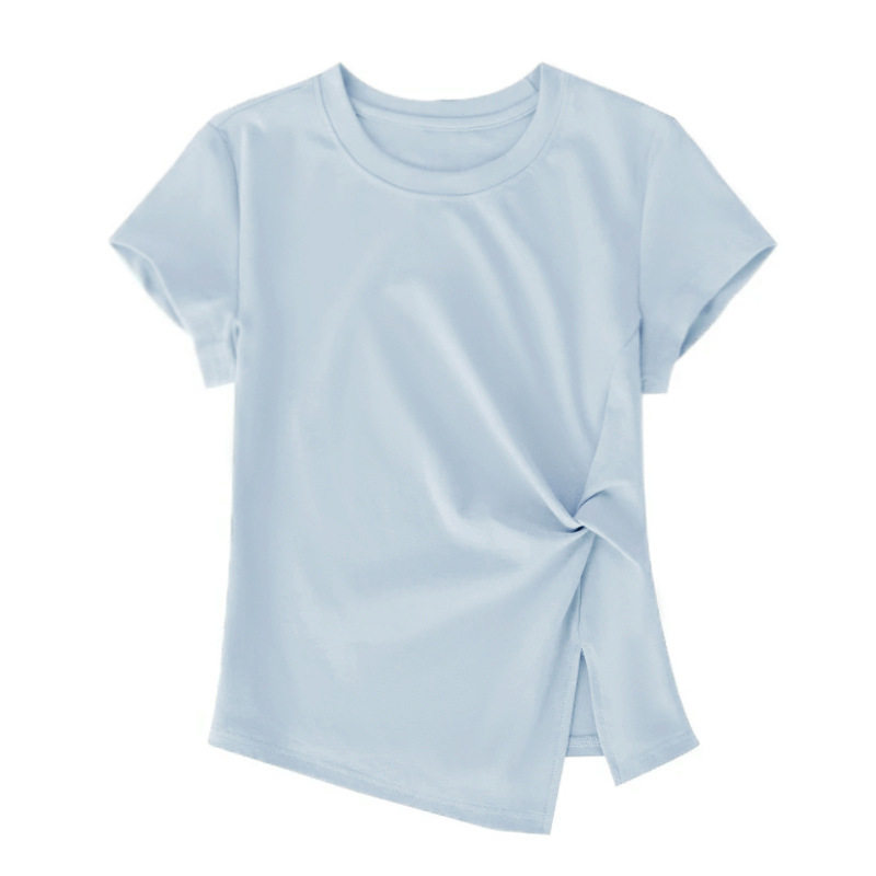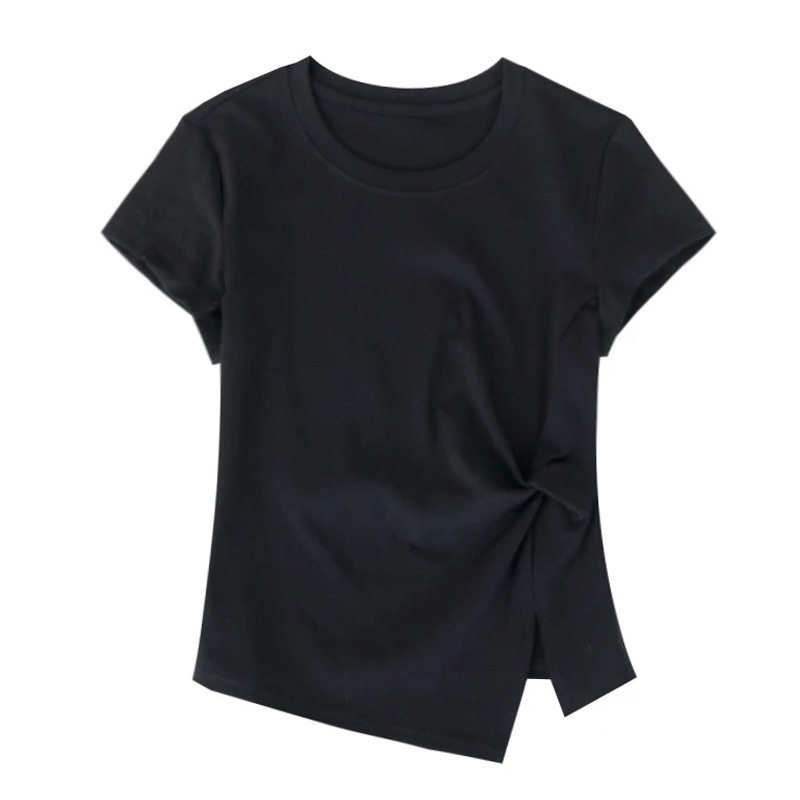 淘宝设计感扭结显瘦短袖圆领T恤女2026年新款纯色不规则开叉短款上衣