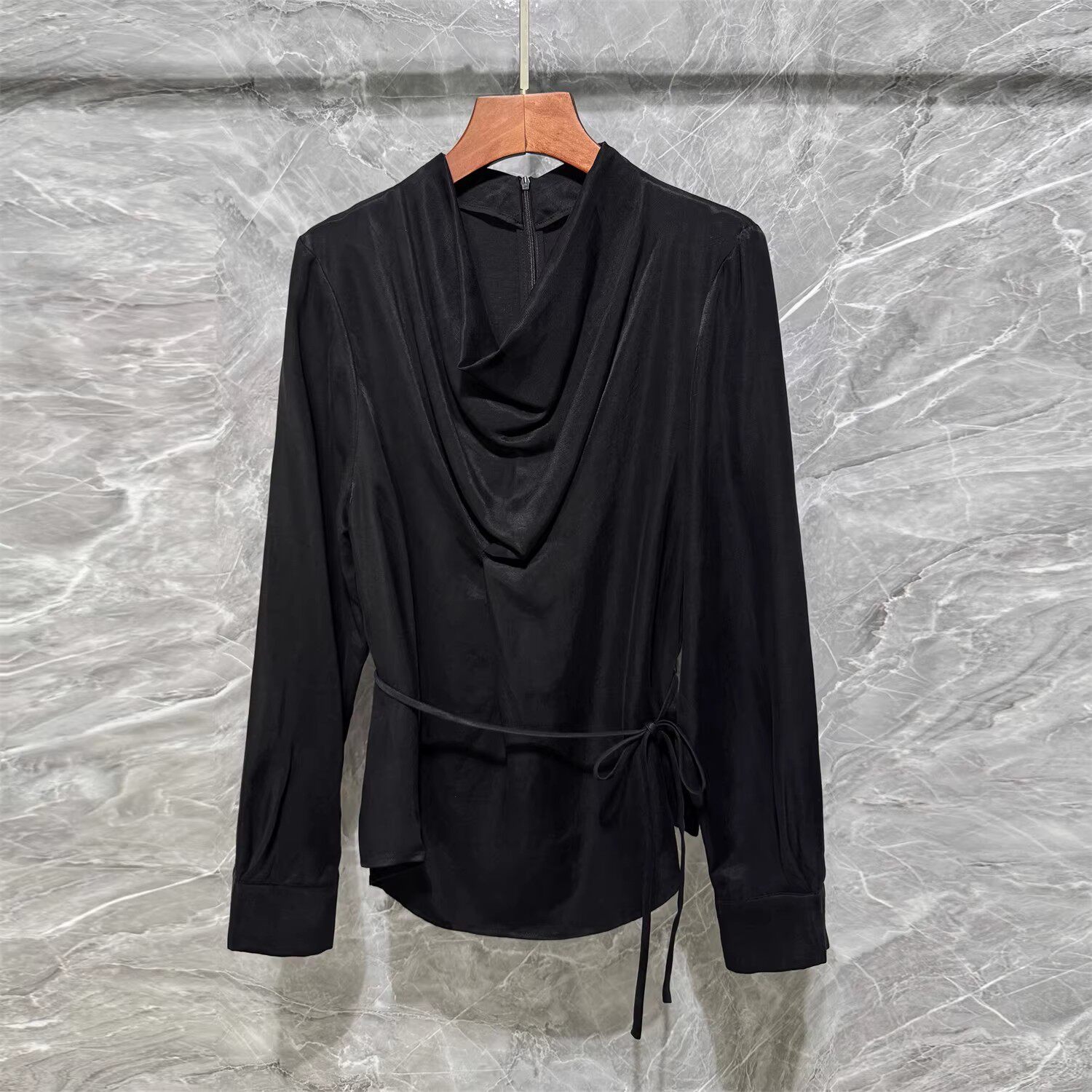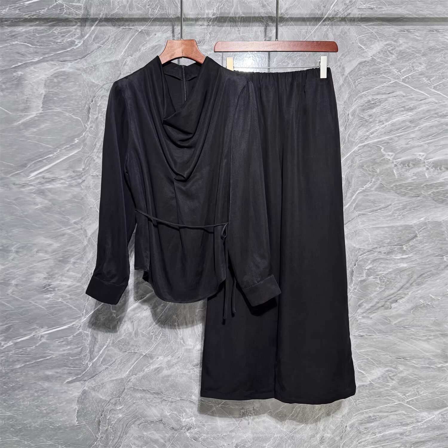 淘宝2026春季新款时尚气质荡领上衣休闲套装高端铜氨丝亚麻长袖衬衫女