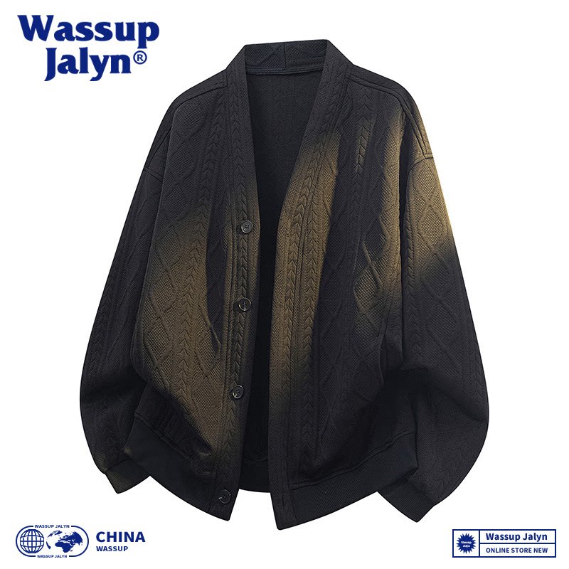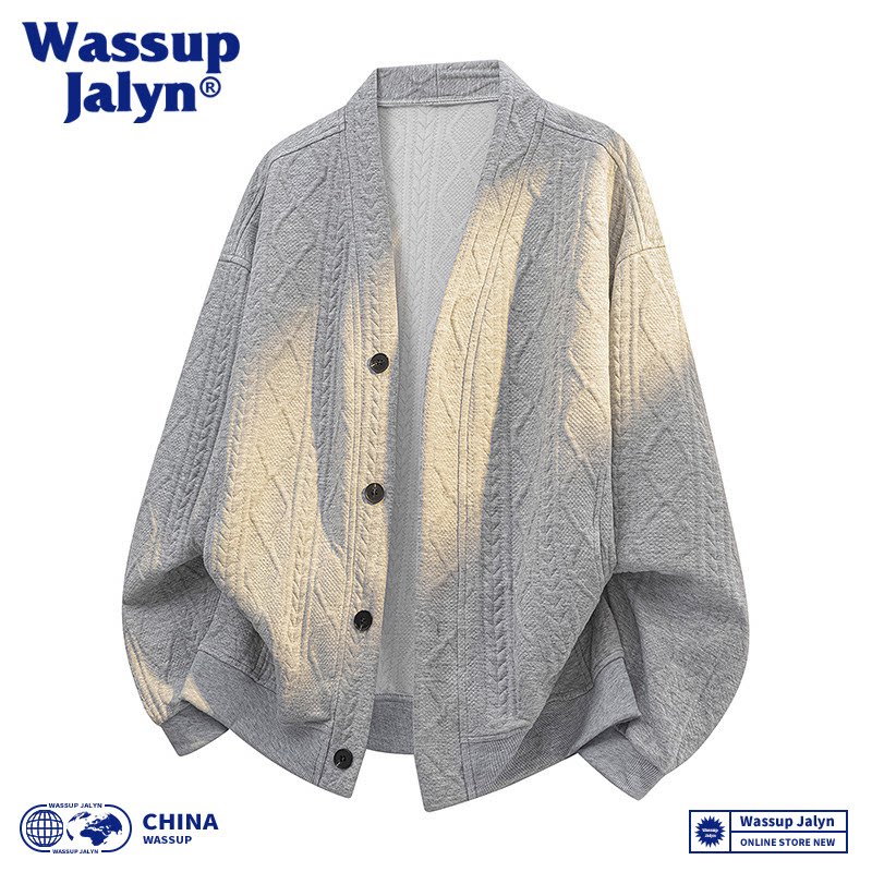 WASSUP JALYN高级感卫衣男开衫秋季针织新款潮流宽松百搭休闲外套