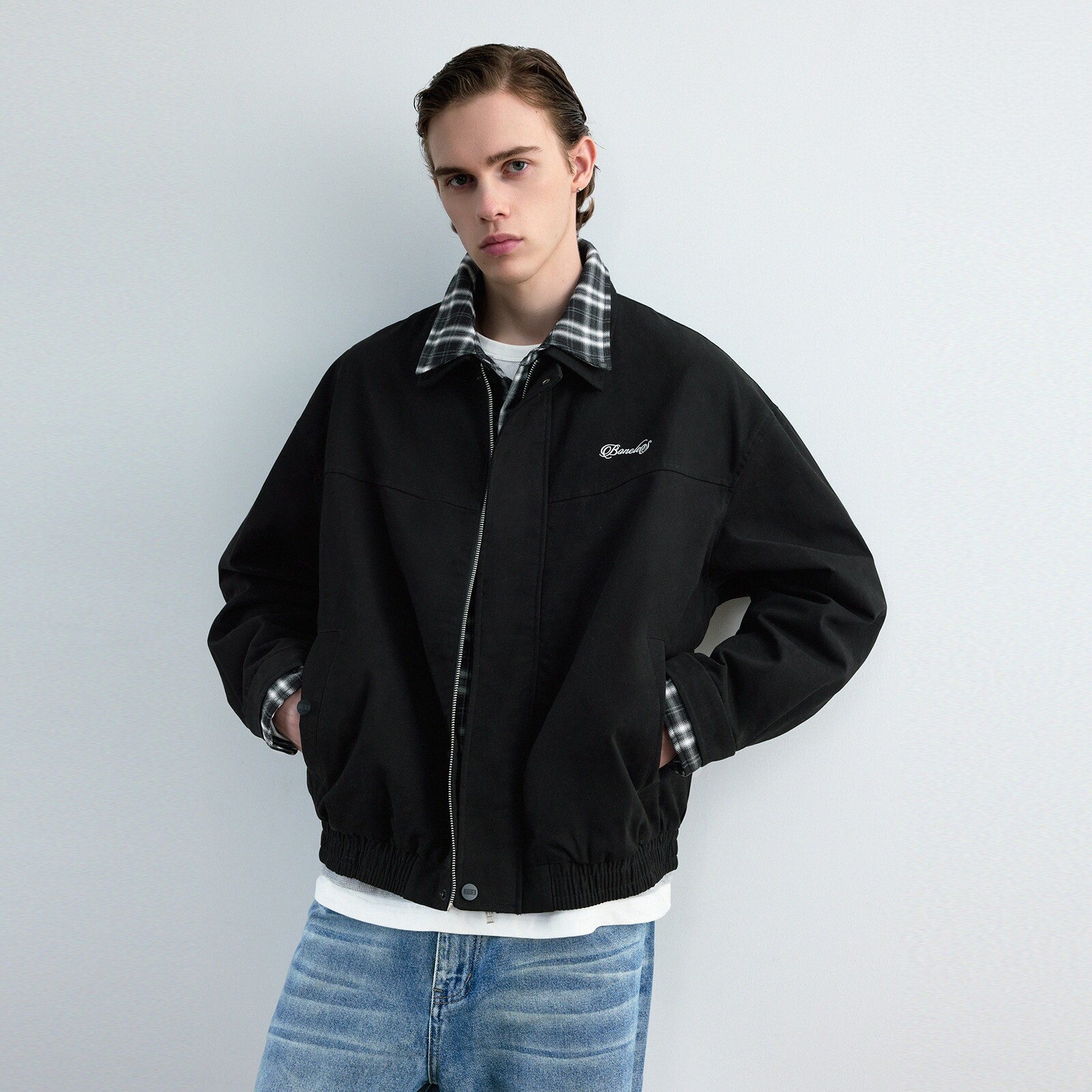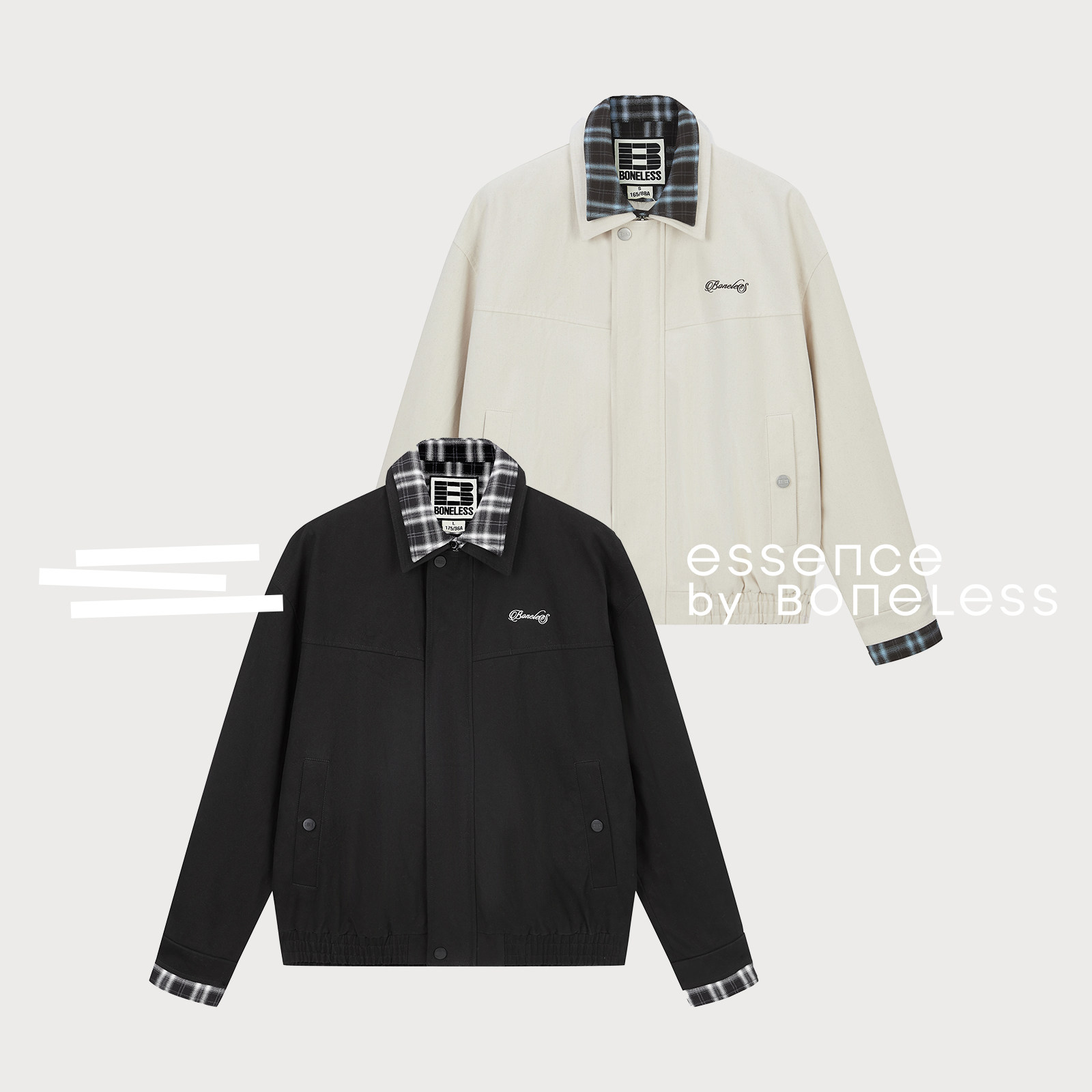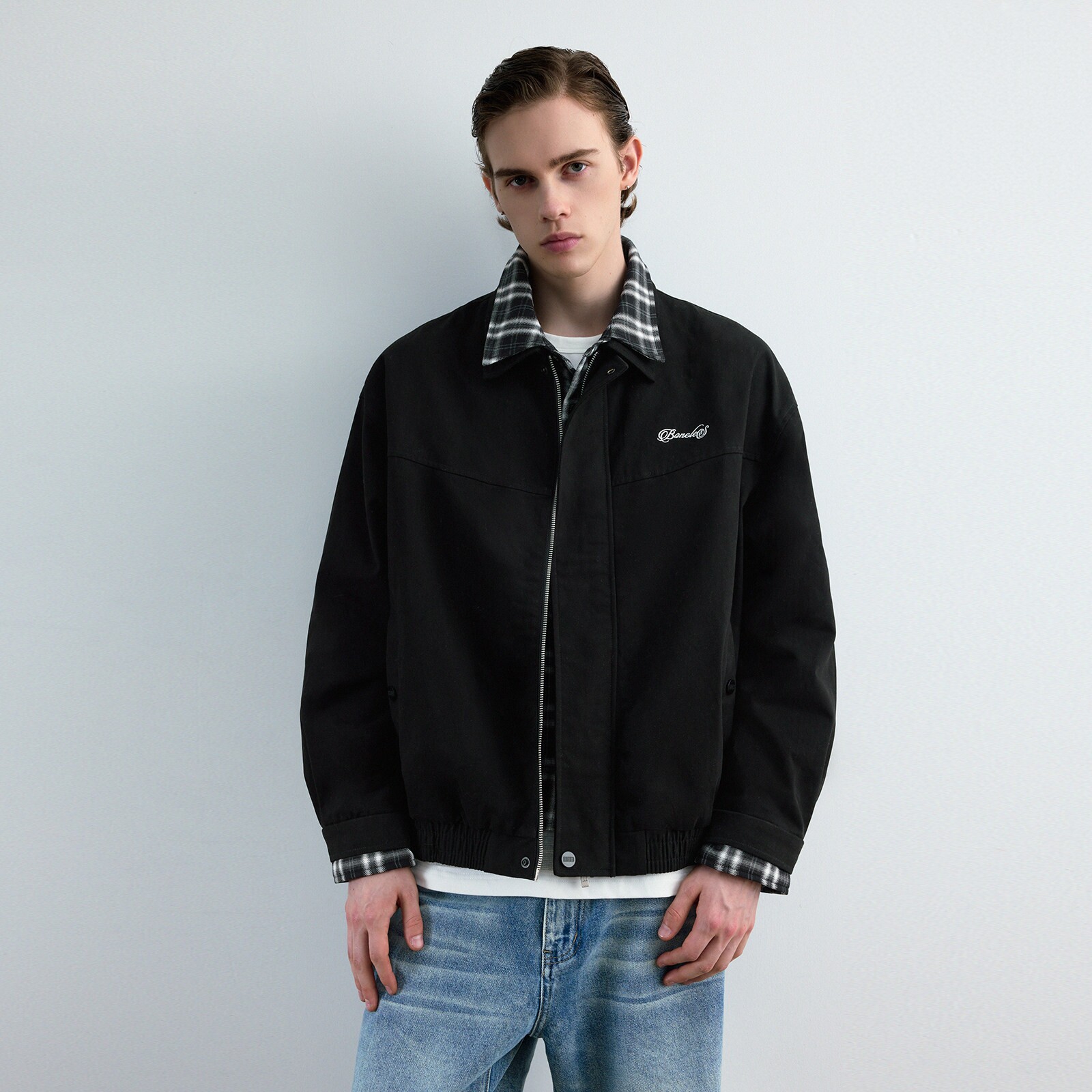 假两件撞色拼接格子翻领刺绣夹克纯棉支线Essence by BONELESS