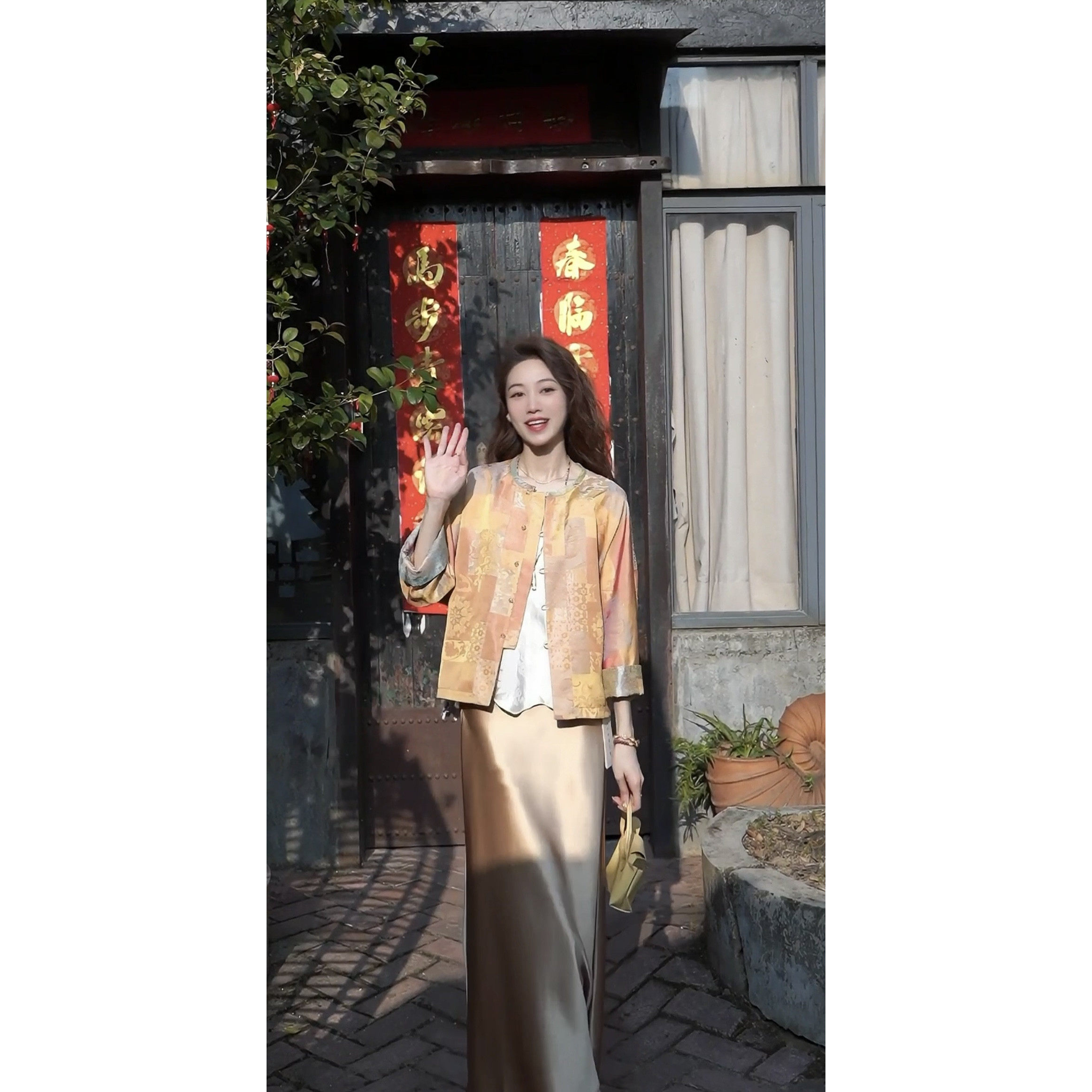 双面穿新中式时尚圆领百搭显瘦气质花萝外套7985