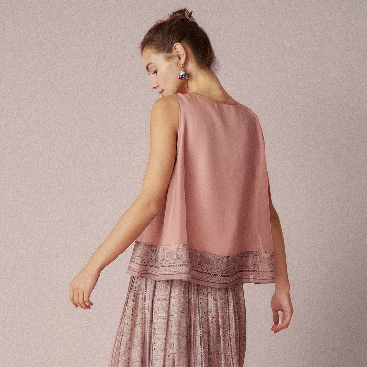 淘宝HUI卉桃夭粉苗族手绣印纹薄纱中式再设计背心上衣2026春新款