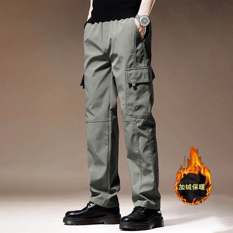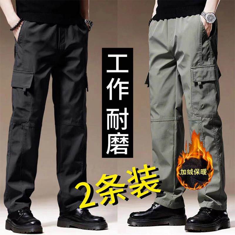加绒工装裤男士秋冬保暖宽松大码直筒裤春秋季耐磨防风防水工作裤