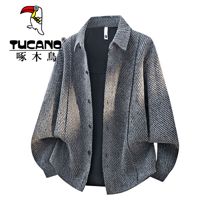 淘宝啄木鸟春季衬衫男生港风潮流宽松翻领青少年长袖衬衣时尚夹克外套