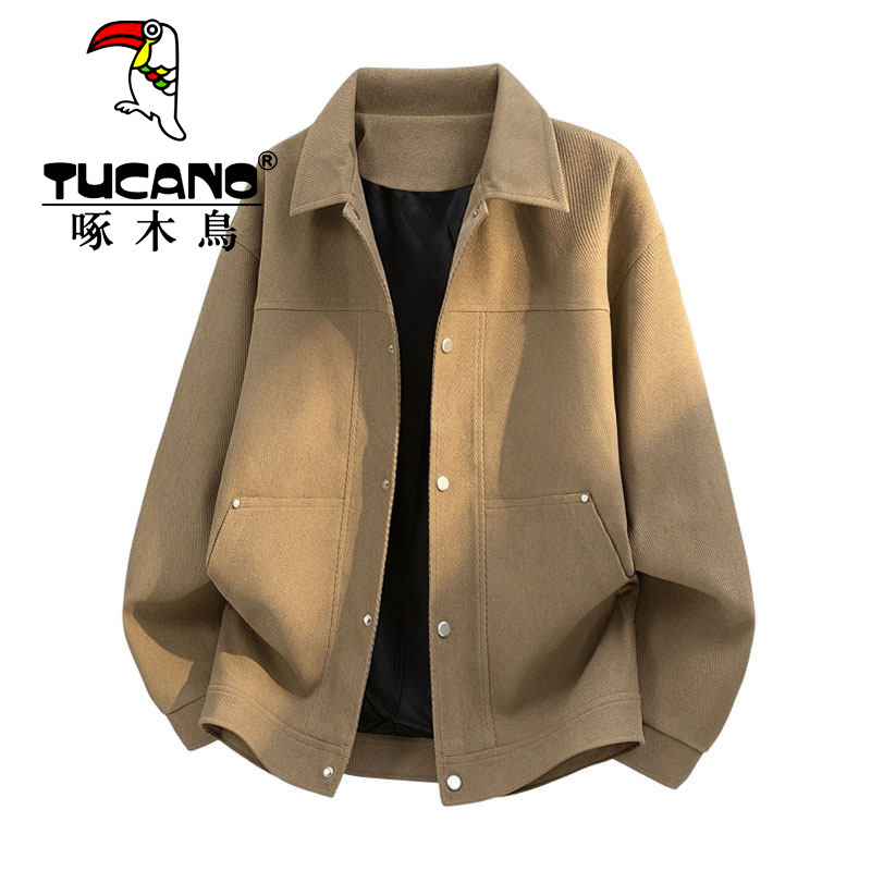 啄木鸟美式复古立领外套男春秋季宽松休闲潮牌夹克新款百搭上衣服