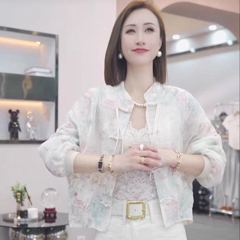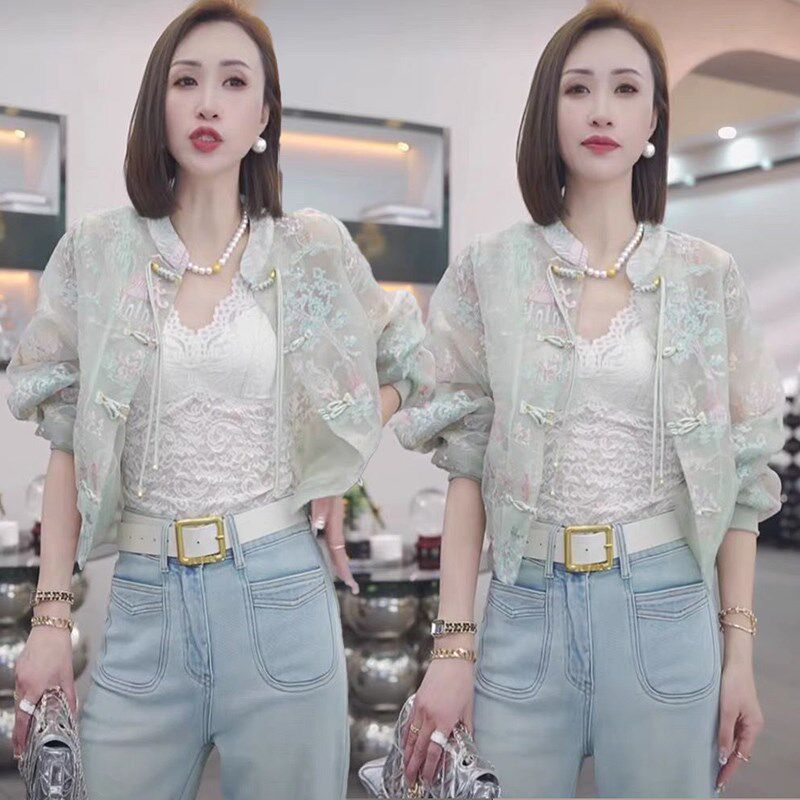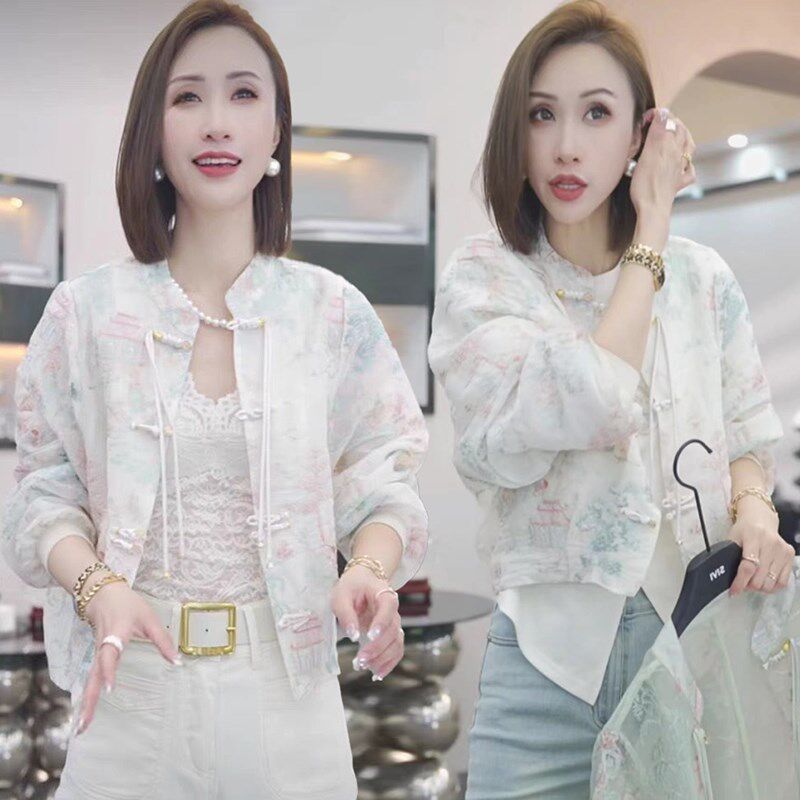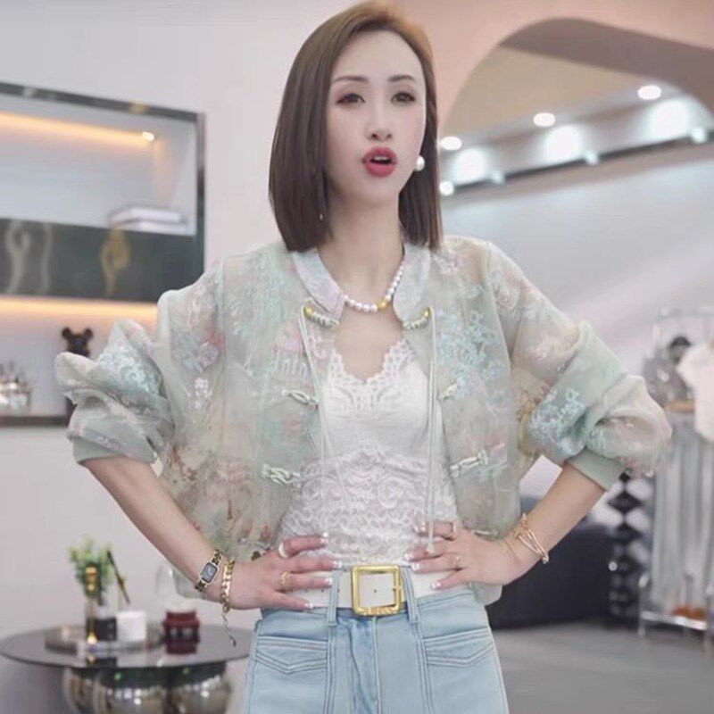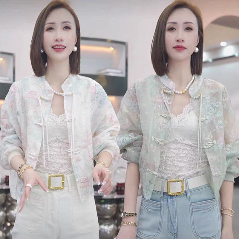 淘宝江南烟雨新中式国潮风刺绣短外套女春夏新款复古盘扣防晒立领上衣