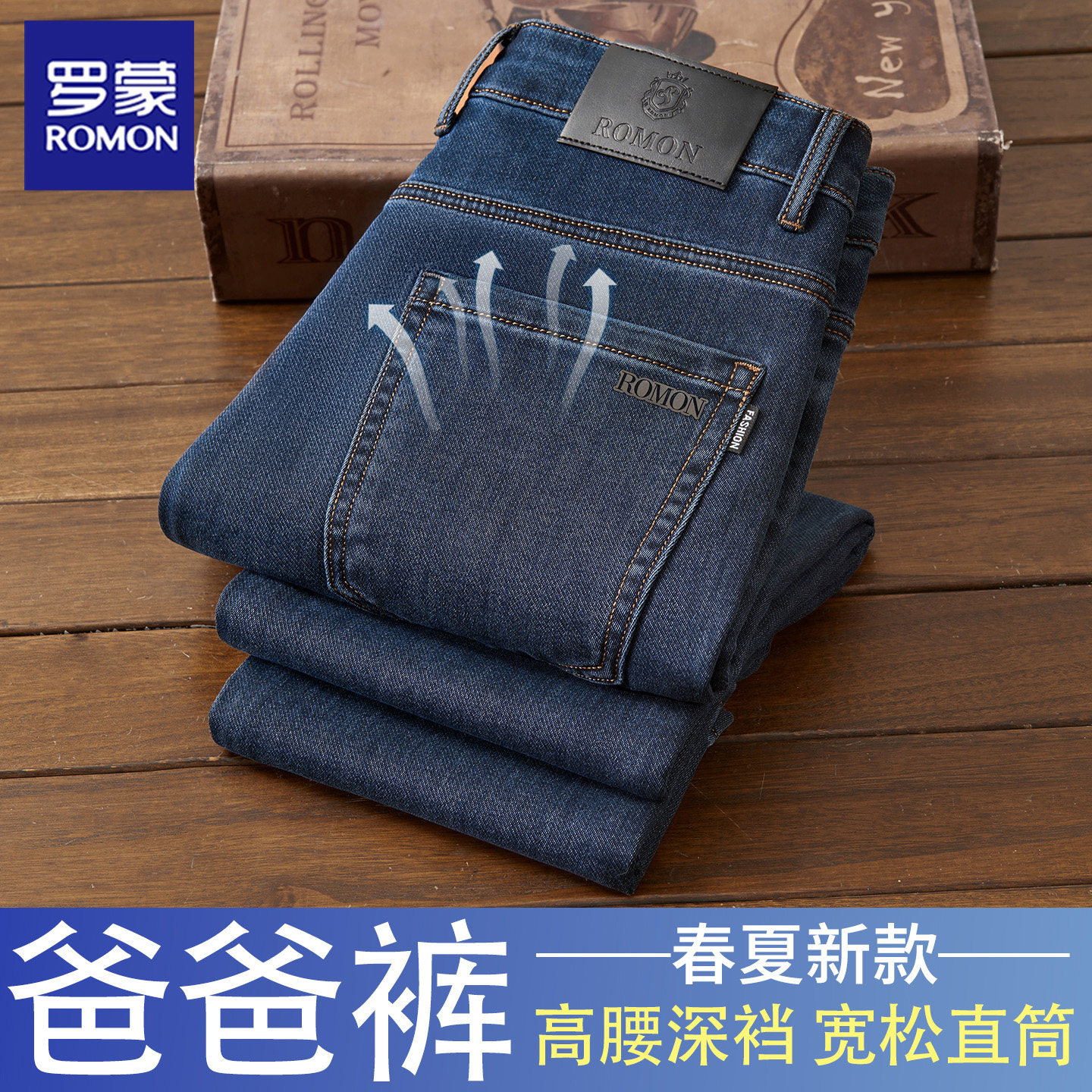 罗蒙牛仔裤男宽松直筒高腰深裆弹力爸爸装春夏季薄款商务休闲免烫
