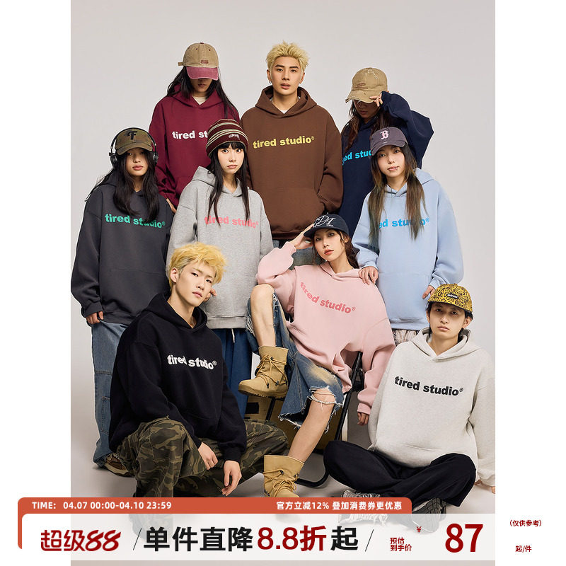 --------------------- TIRED简约连帽卫衣男女长袖春秋400g百搭情侣款宽松套头街头上衣 【原售价】148元 【现售价】89.1元 【推荐理由】