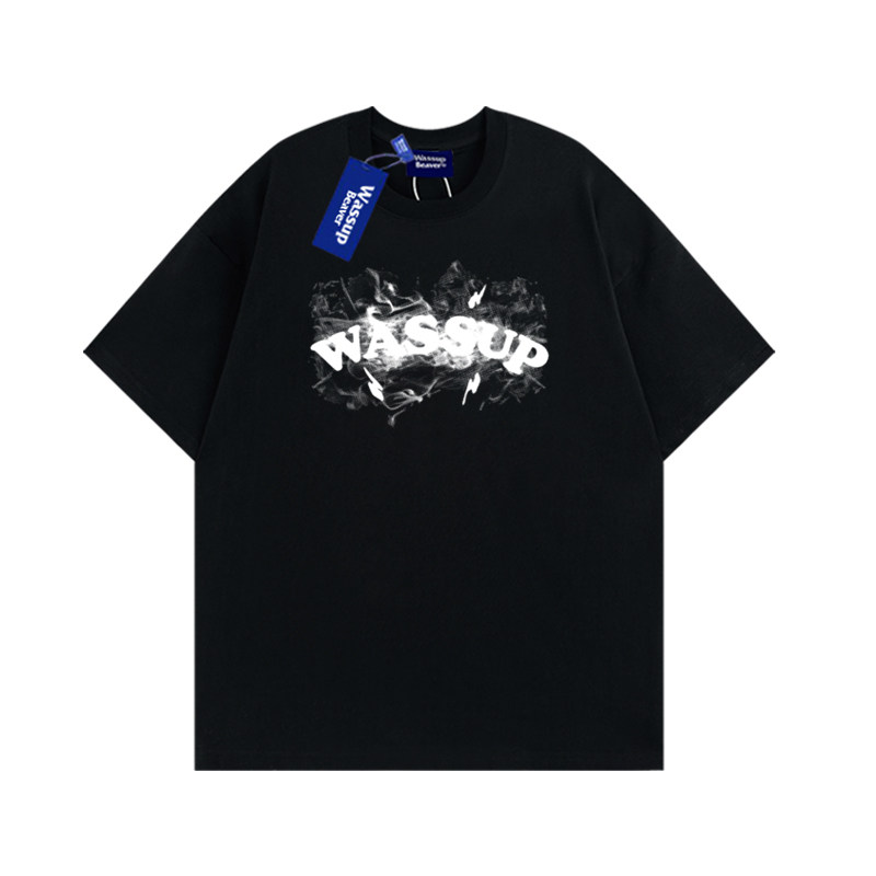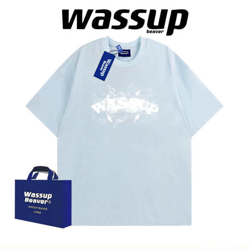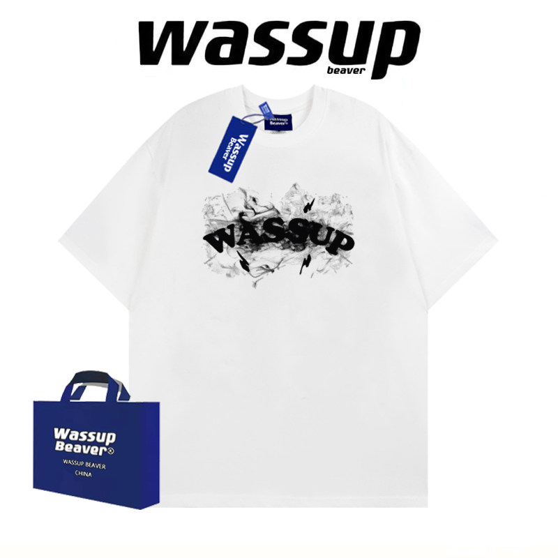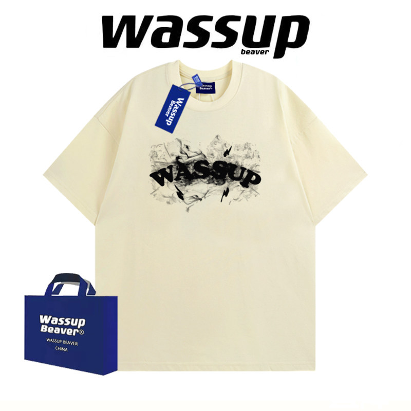 WASSUP BEAVER国潮纯棉短袖夏季美式男女情侣T恤宽松半袖休闲上衣