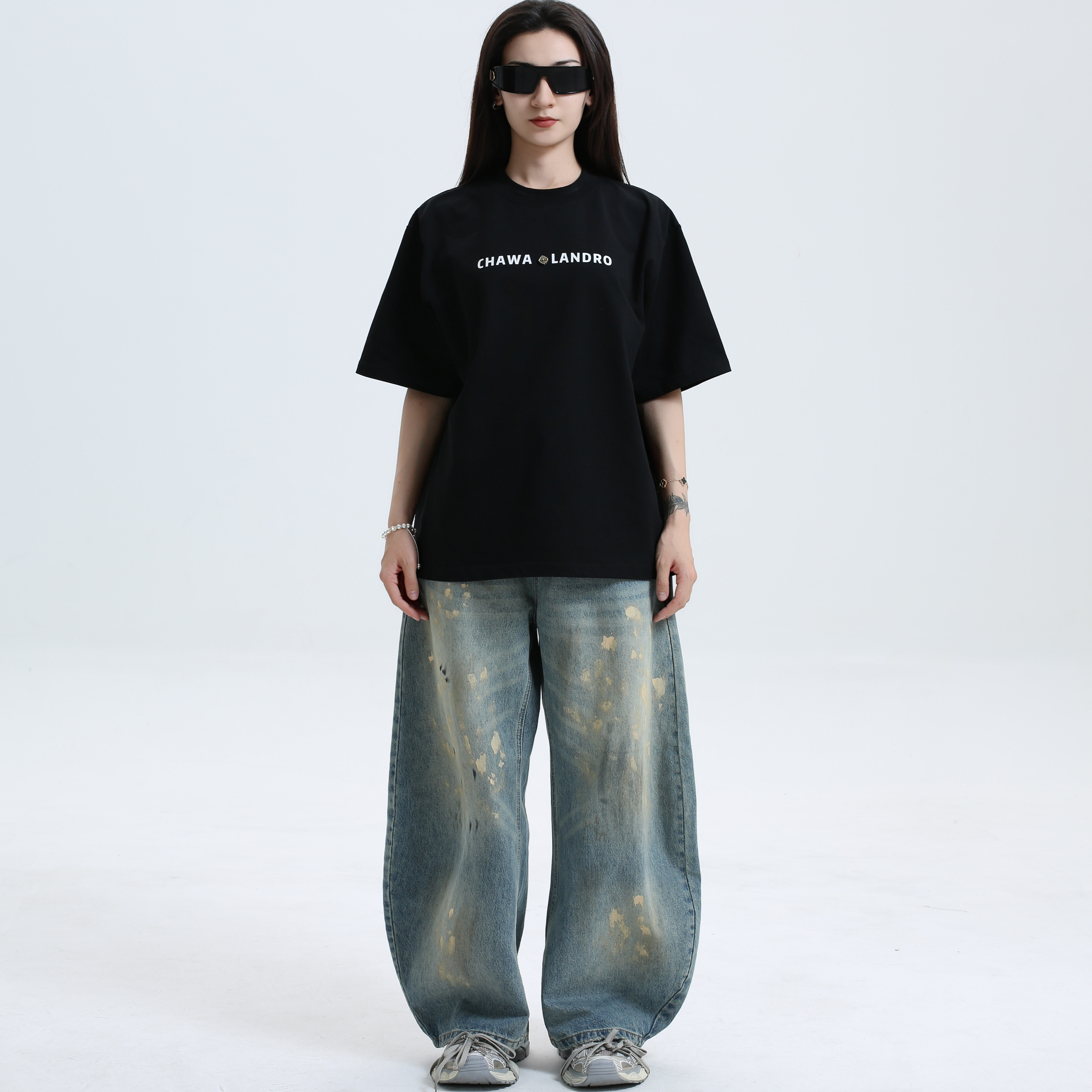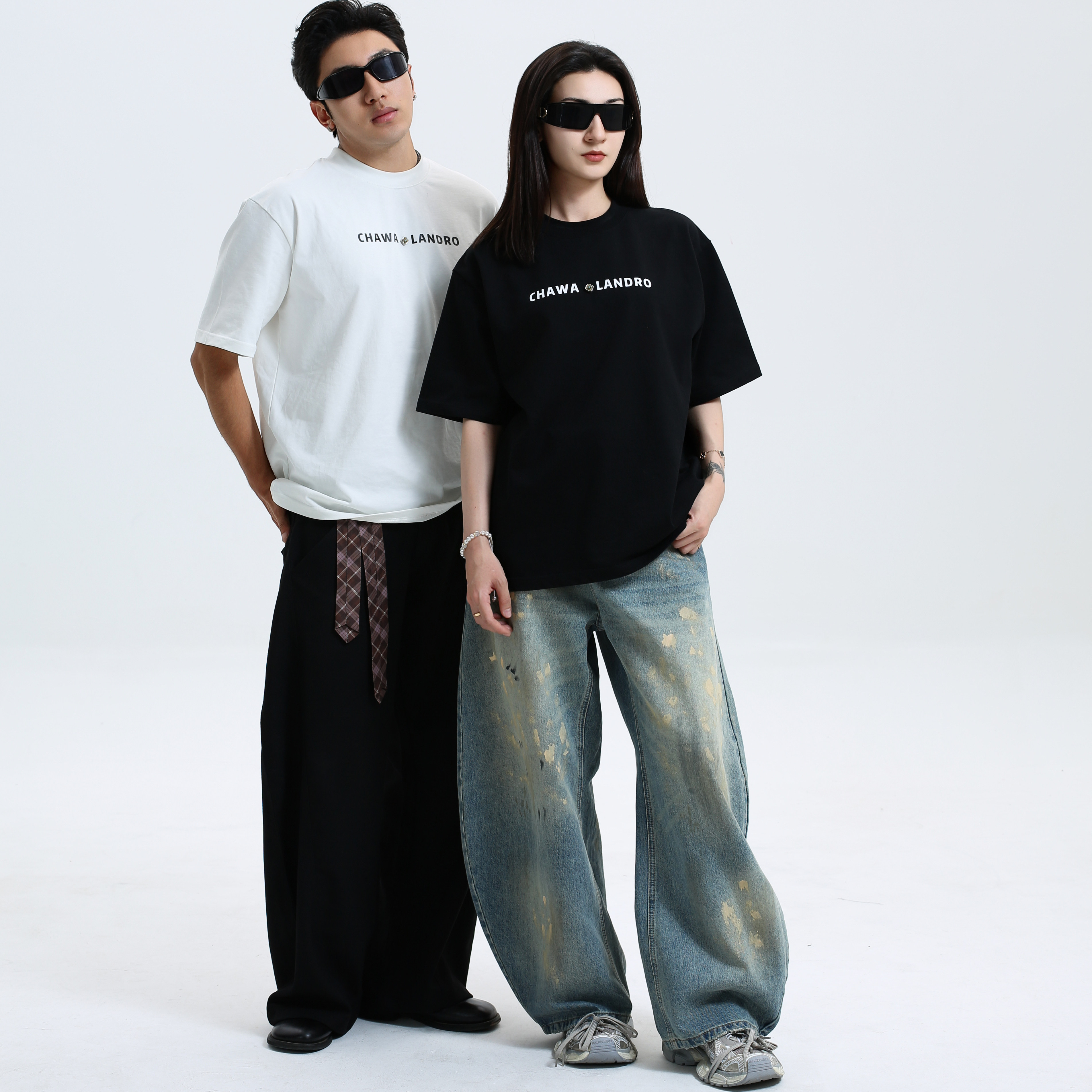 CHAWALANDRO夏瓦兰卓夏季新款重磅立体刺绣情侣金刚杵纯棉T恤短袖