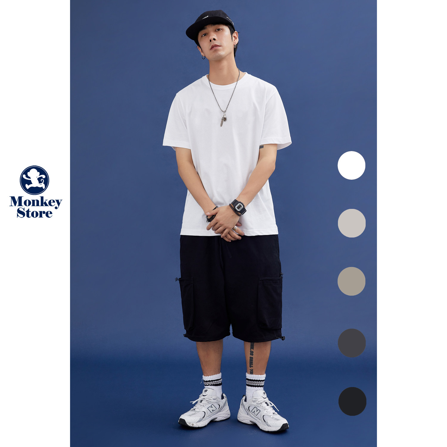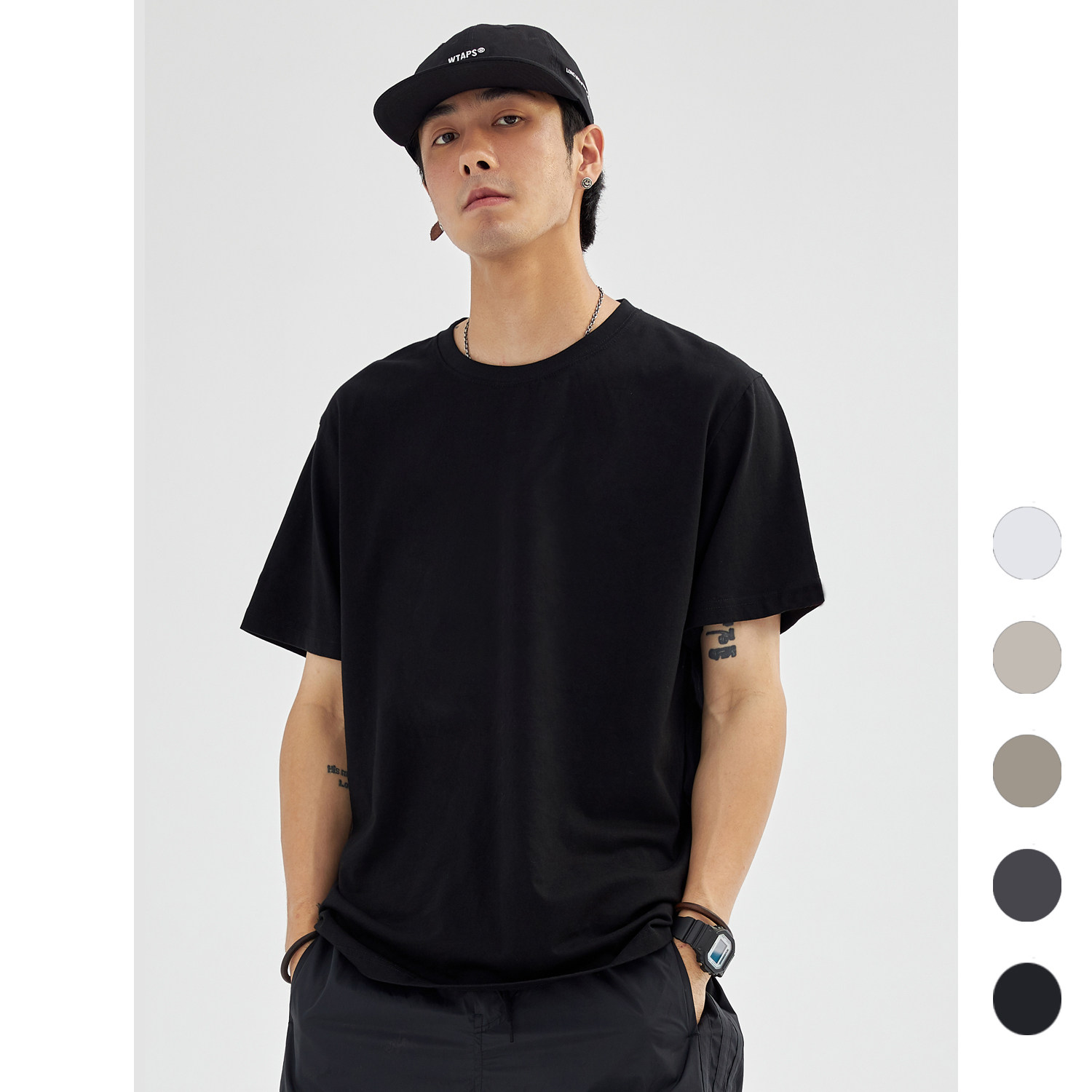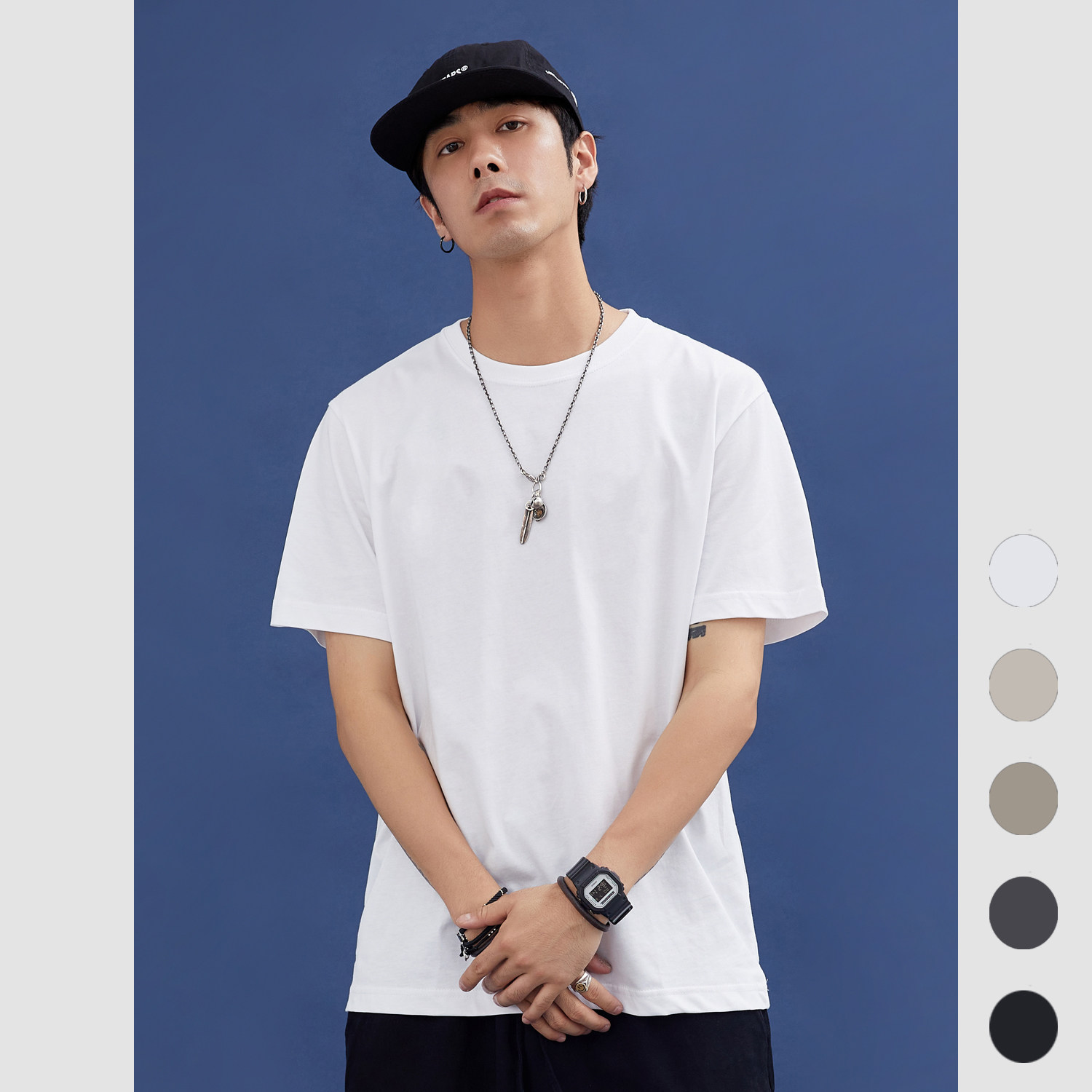 热石HOTSTONE230克基础款彩色打底衫男女情侣学生纯棉半短袖T恤夏