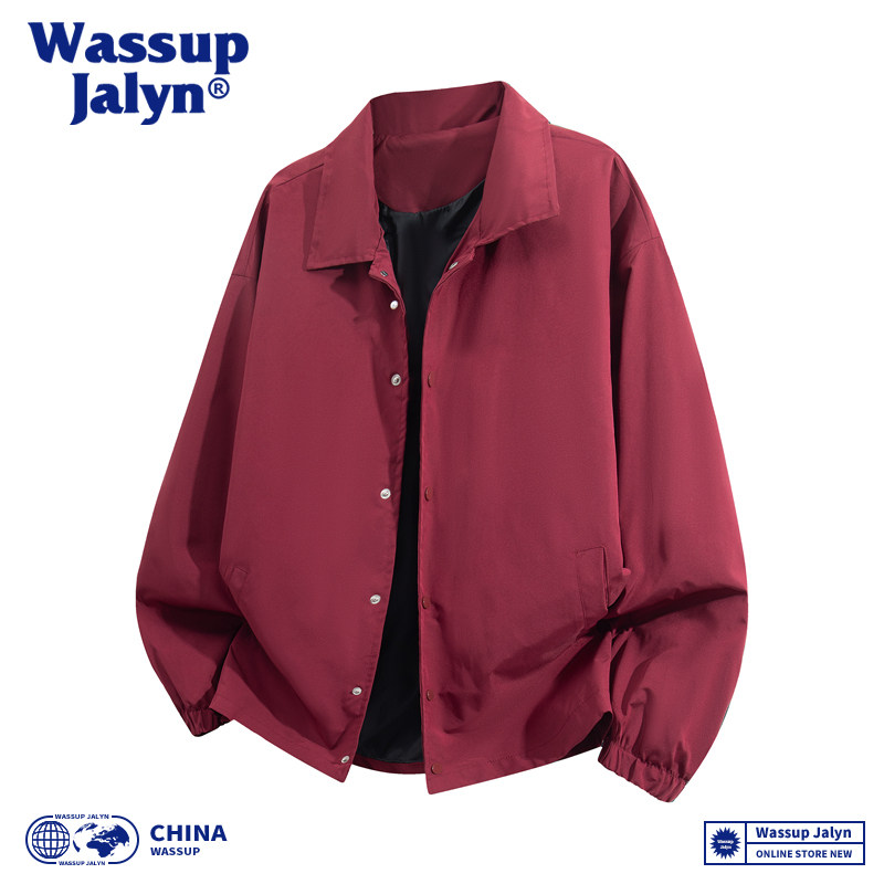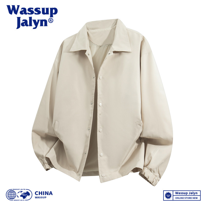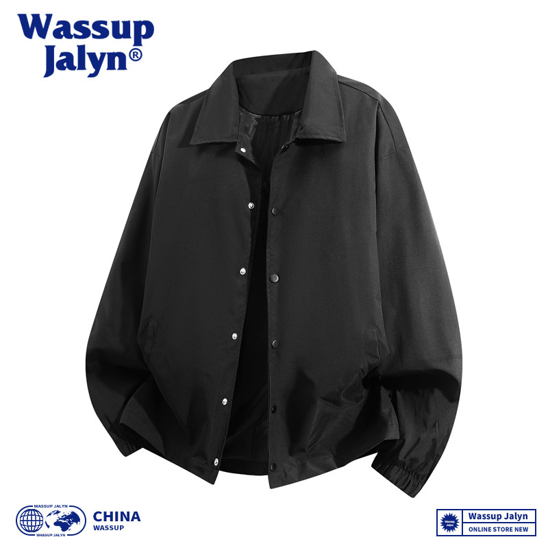 WASSUP JALYN日系翻领工装教练夹克男女春秋宽松休闲情侣纯色外套
