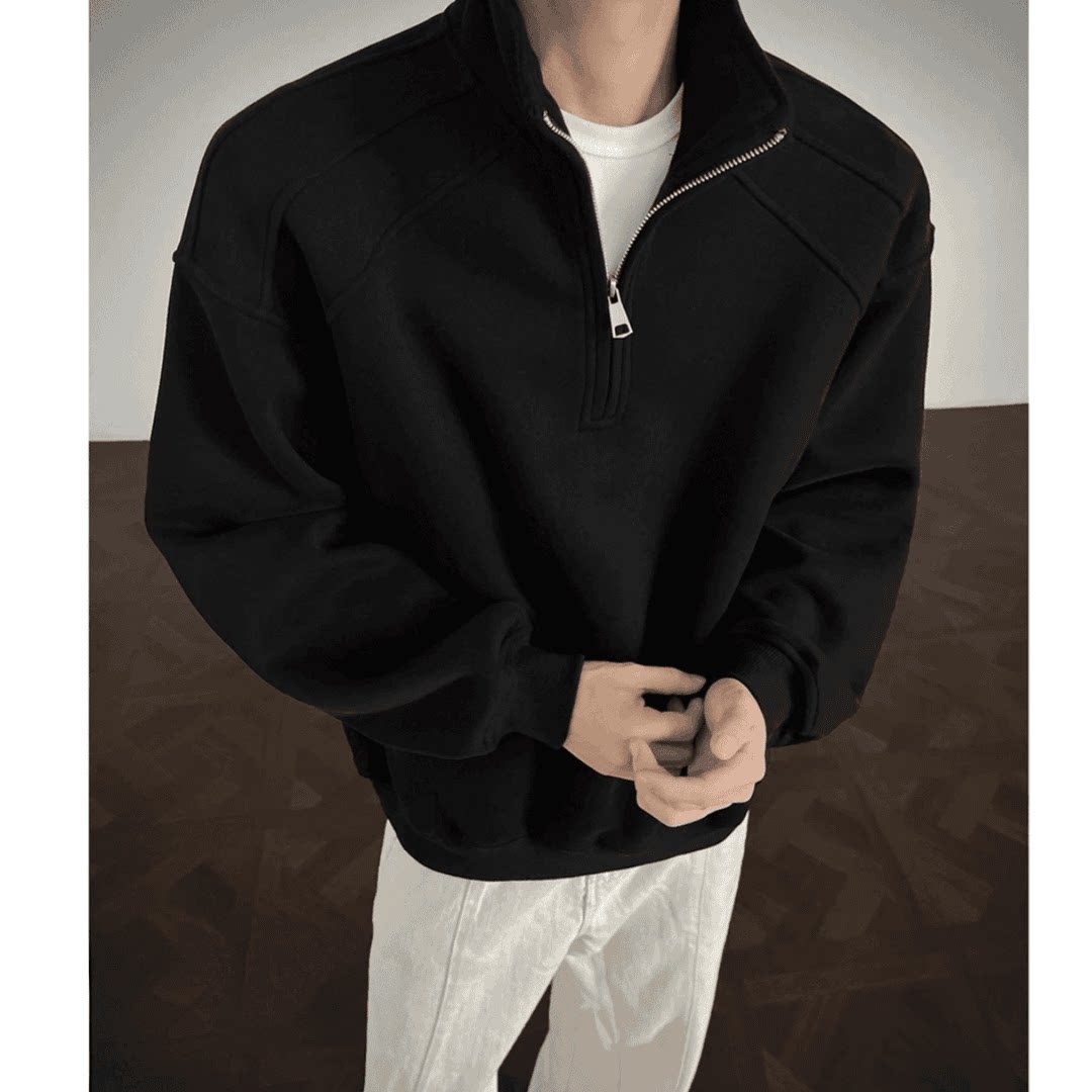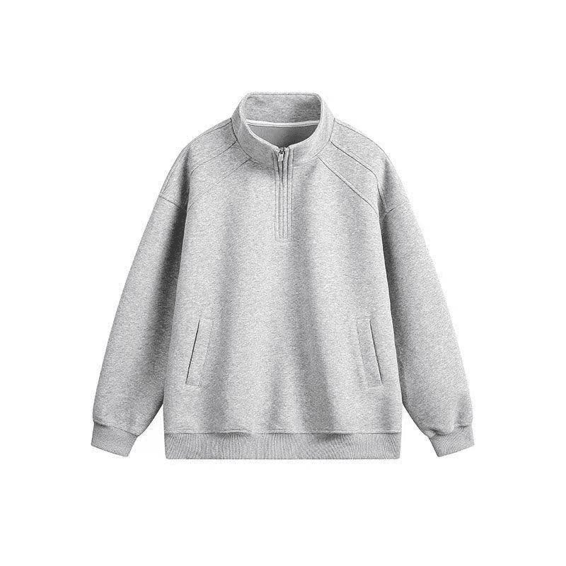 现货立领半拉链卫衣春秋美式休闲翻领上衣加绒保暖秋冬高级感男装