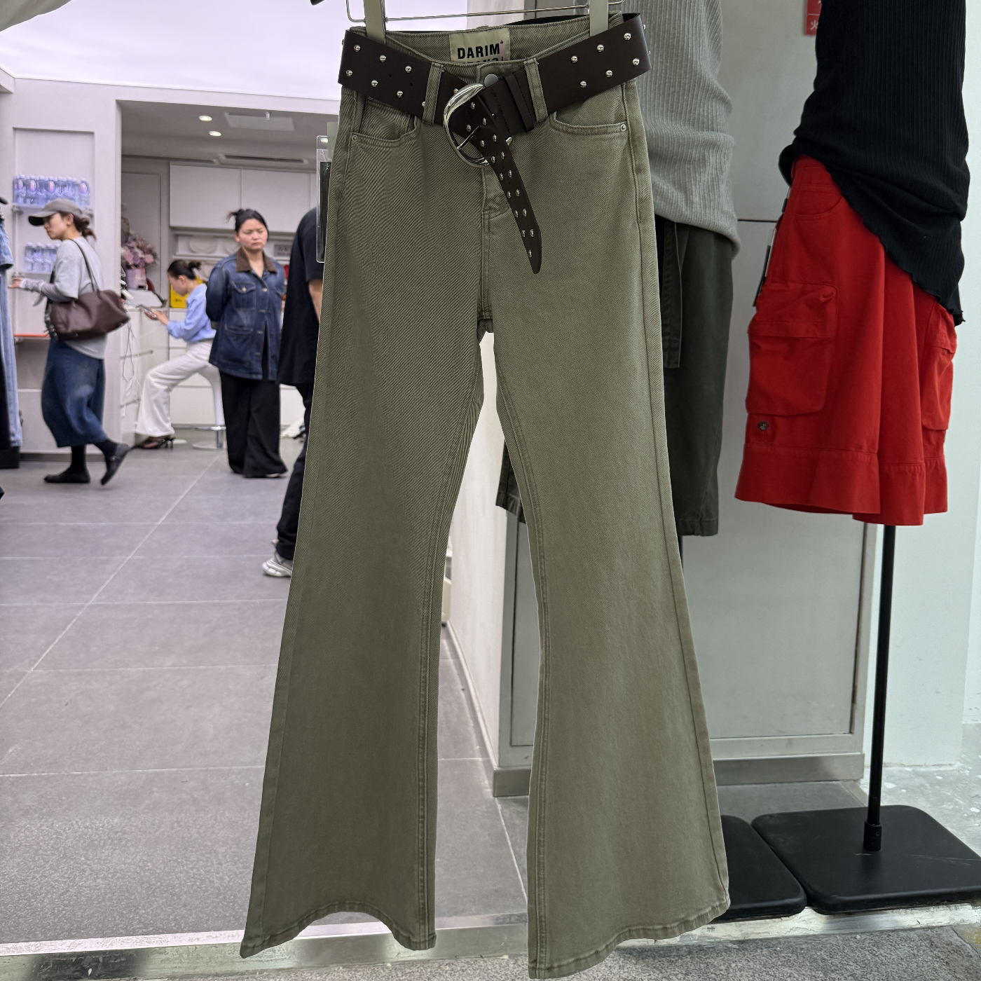 十三行现货2026春季新款韩版复古简约修身显瘦微喇裤s26014w200