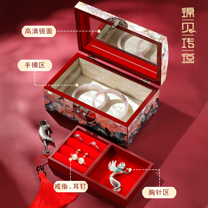 锦贝传说非遗螺钿首饰盒国潮项链手镯收纳结婚礼物送新人订婚闺蜜