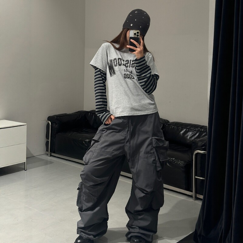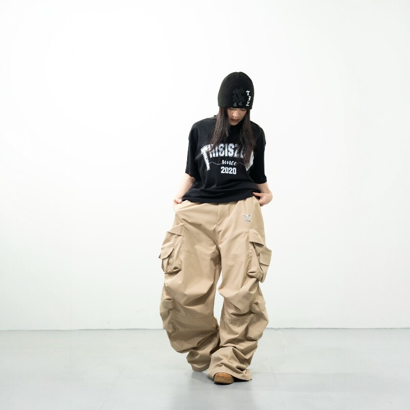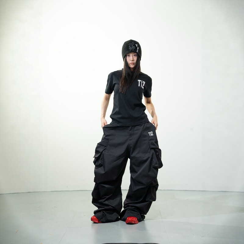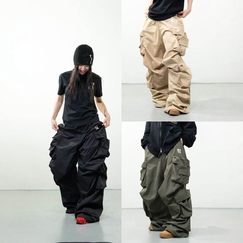 小标印花重工速干工装裤男女宽松休闲街舞多口袋垂感阔腿裤直筒裤