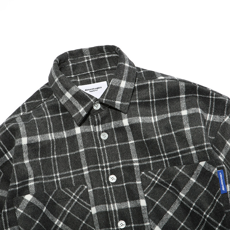 ABSURD LOGIC 荒诞逻辑 美式街头 羊毛混纺毛呢宽松格子衬衫外套