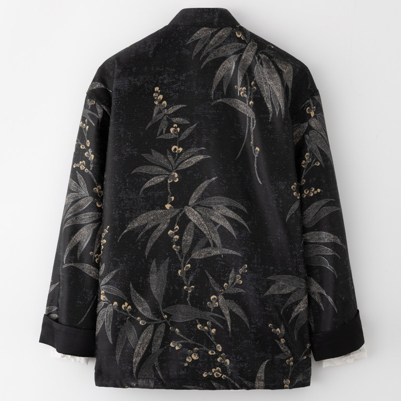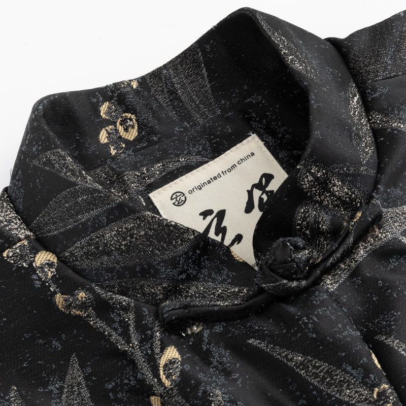 淘宝春季新款中国风国潮唐装中式改良长袖外套原创盘扣树叶提花上衣男