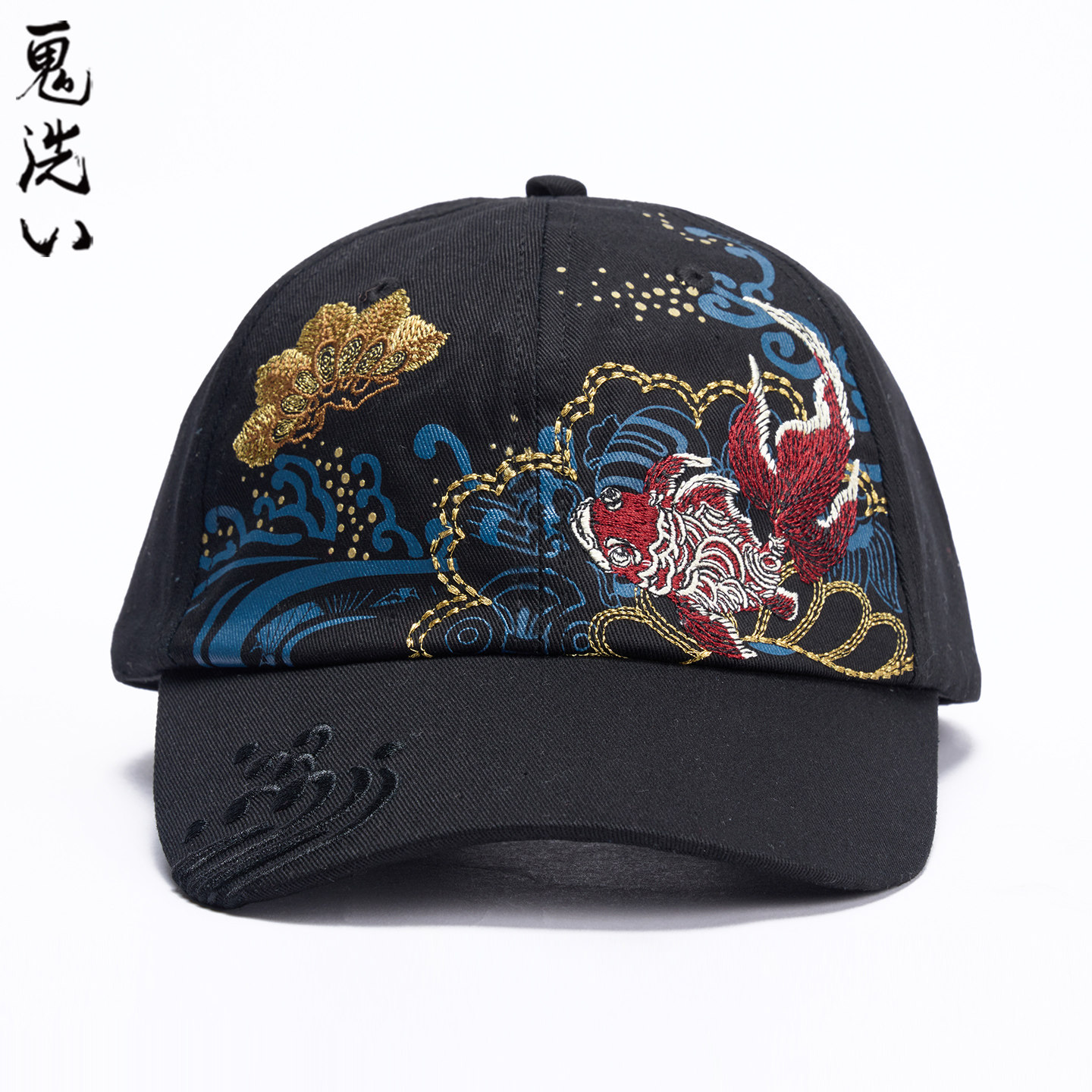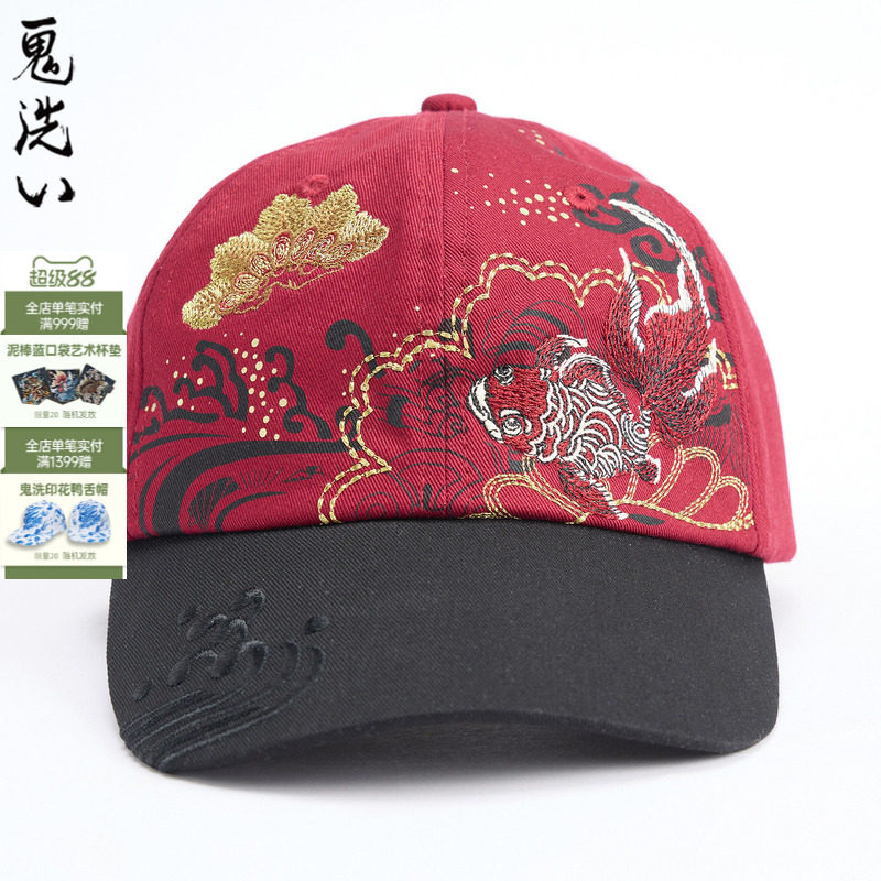 淘宝ONIARAI/鬼洗26春夏新泥棒蓝松叶金鱼绣花软顶帽男女通用 26NA401