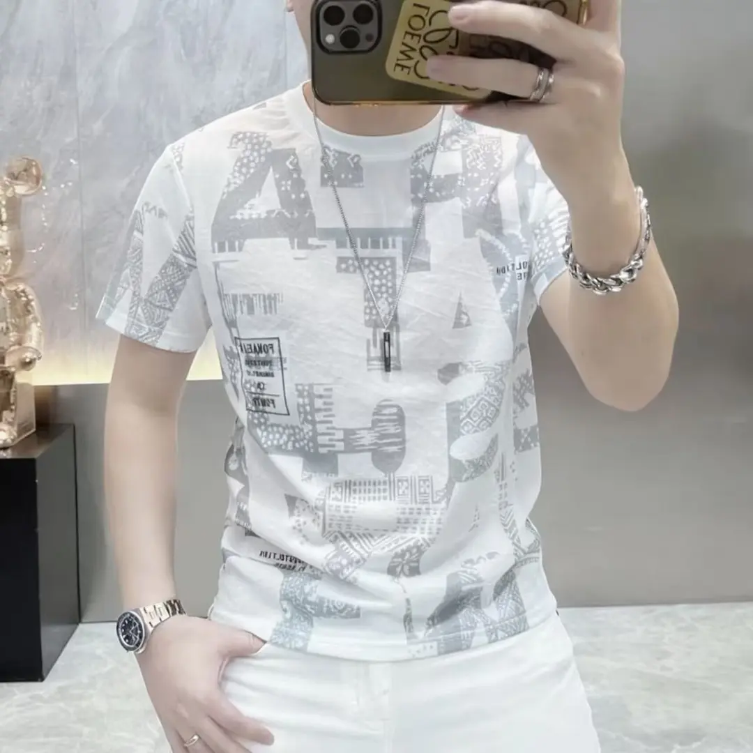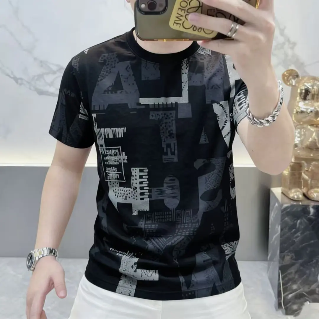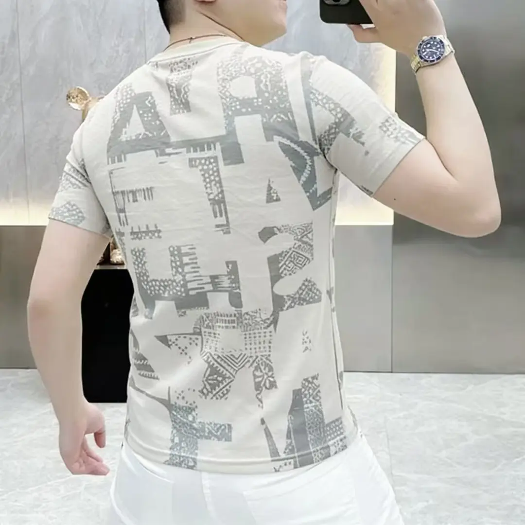 卡尔精品服饰夏季薄款短袖T恤男士复古印花体恤衫透气圆领半袖t恤