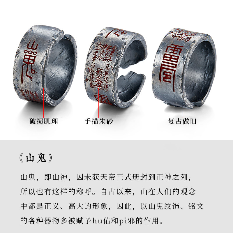 --------------------- 山鬼-999足银戒指男款纯银饰品尾戒道家复古高级感扳指送人礼物 --------------------- --------------------- 【原价】595元 【券后价】587元