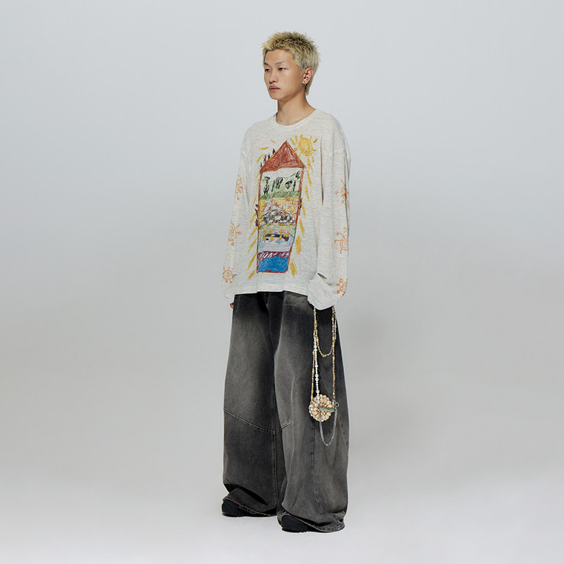 --------------------- CONP 23SS Tai Ji House 彩铅涂鸦阳光房子宽松长T恤 【原售价】280元 【现售价】246元 【推荐理由】