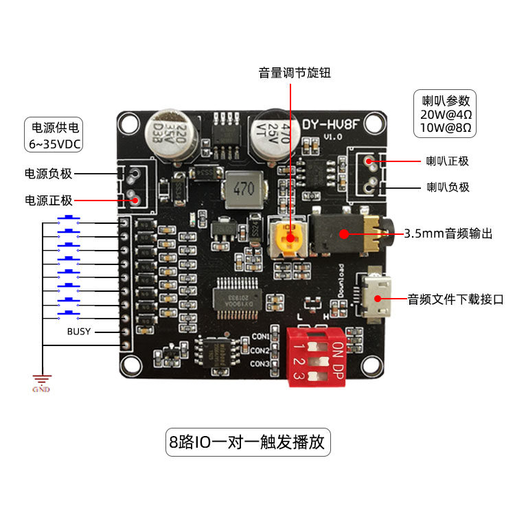 --------------------- 12V/24V语音播放模块一对一触发串口控制播放10W/20W语音模块HV8F 【原售价】23.5元 【现售价】22.9元 【推荐理由】