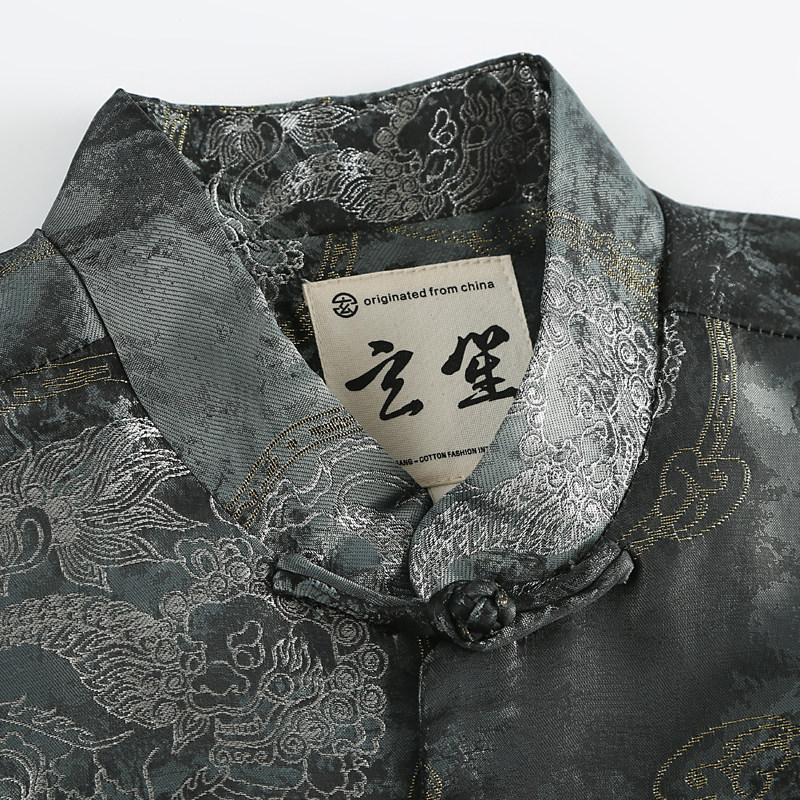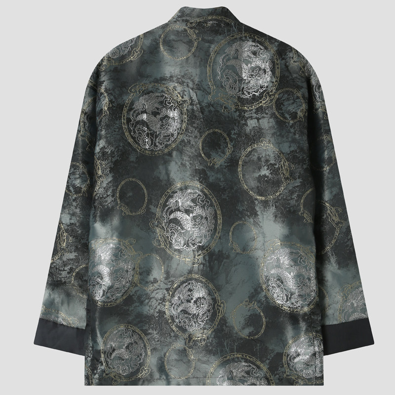 原创男装中国风唐装新中式男装春秋款复古国潮麒麟提花外套上衣男