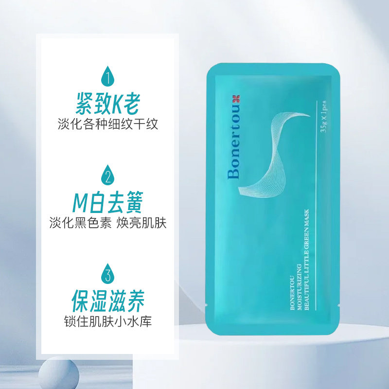 买一送一!Bonertou泊娜朵瑞士小绿膜面膜补水保湿贴片敏感肌修护