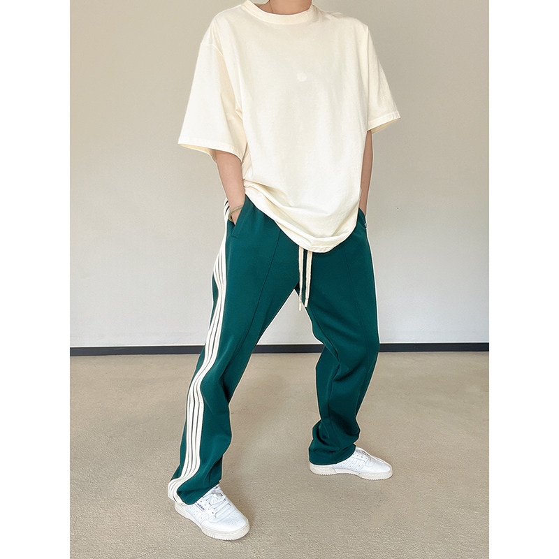 能猫商店复古宽松运动健身休闲校园风中国国潮长裤四条杠裤子男女