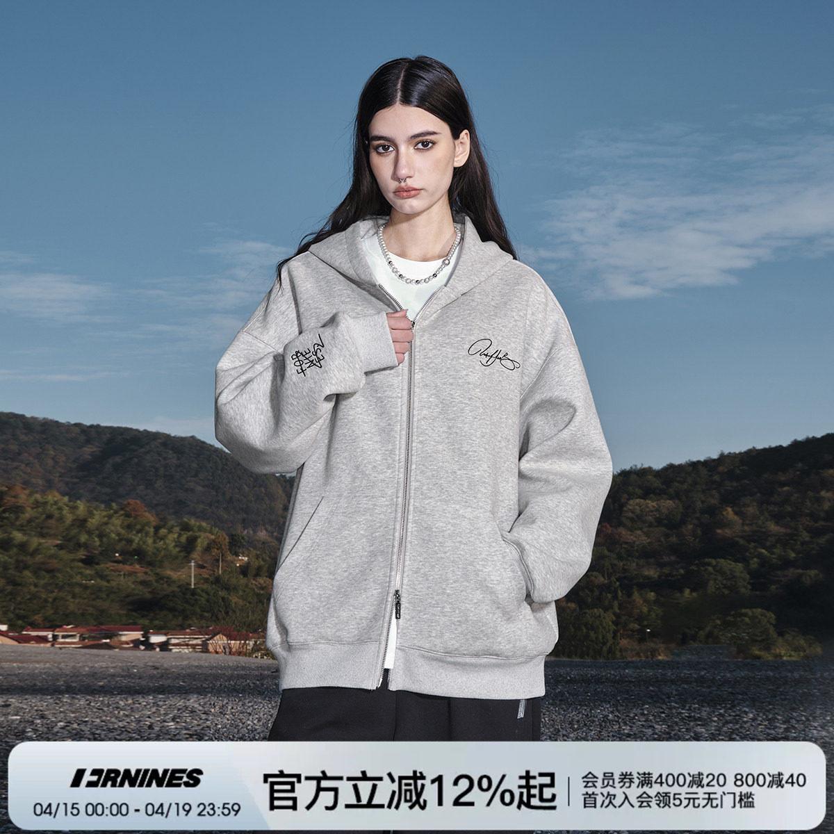 --------------------- FORNINES双拉链刺绣重磅灰色卫衣男女春秋连帽衫国潮美式开衫外套 --------------------- --------------------- 【原价】209元 【券后价】159元