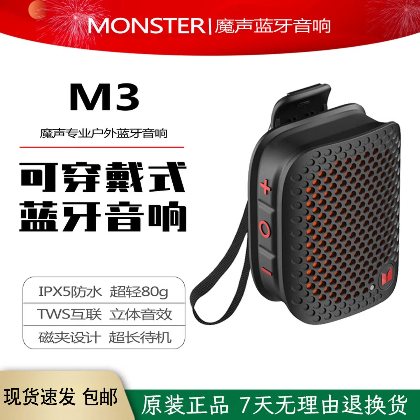 --------------------- 魔声M3户外蓝牙音箱防水便携磁夹式穿戴式迷你音箱户外运动骑行 【原售价】119元 【现售价】88元 【推荐理由】