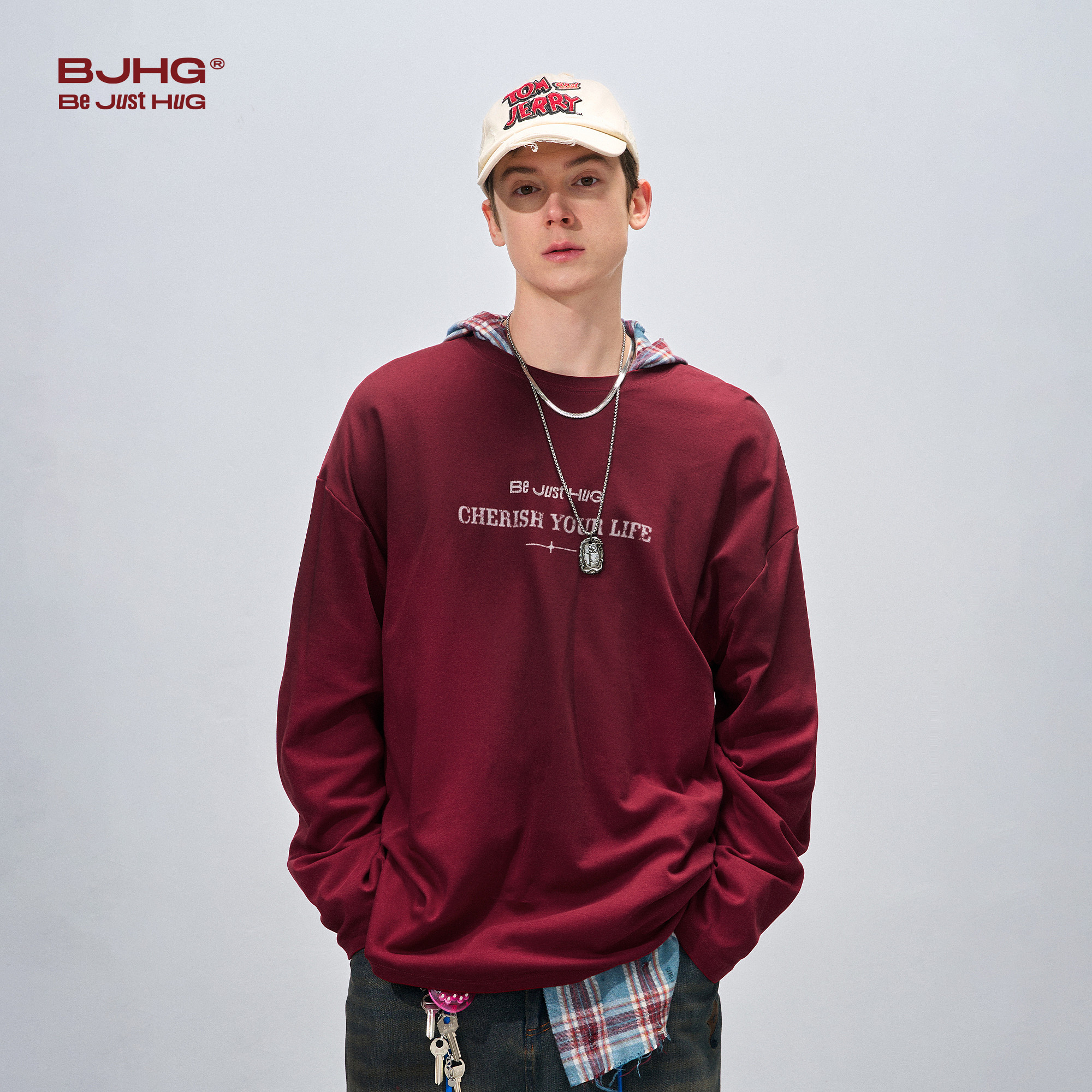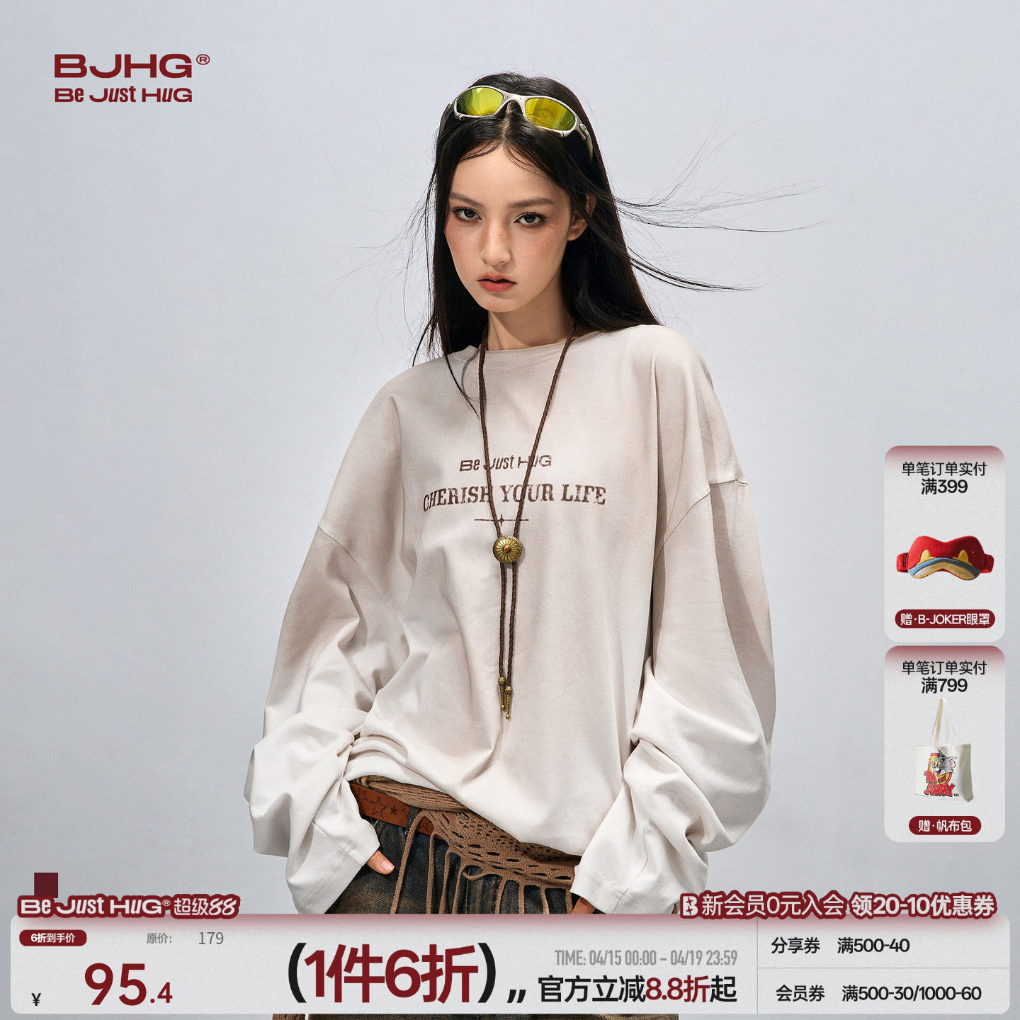 --------------------- BJHG不计后果 复古做旧长袖t恤男款打底衫春夏内搭休闲宽松卫衣女 【原售价】209元 【现售价】95元 【推荐理由】
