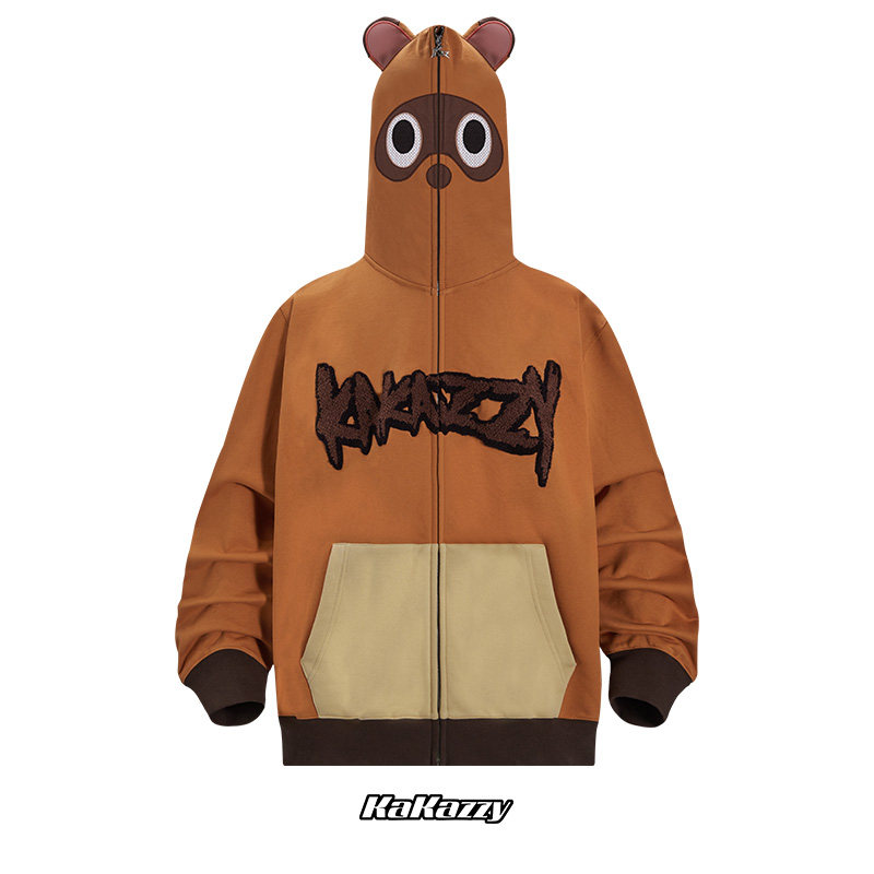 kakazzy美式复古连帽卫衣男春秋冬款重磅大码宽松休闲帽衫外套