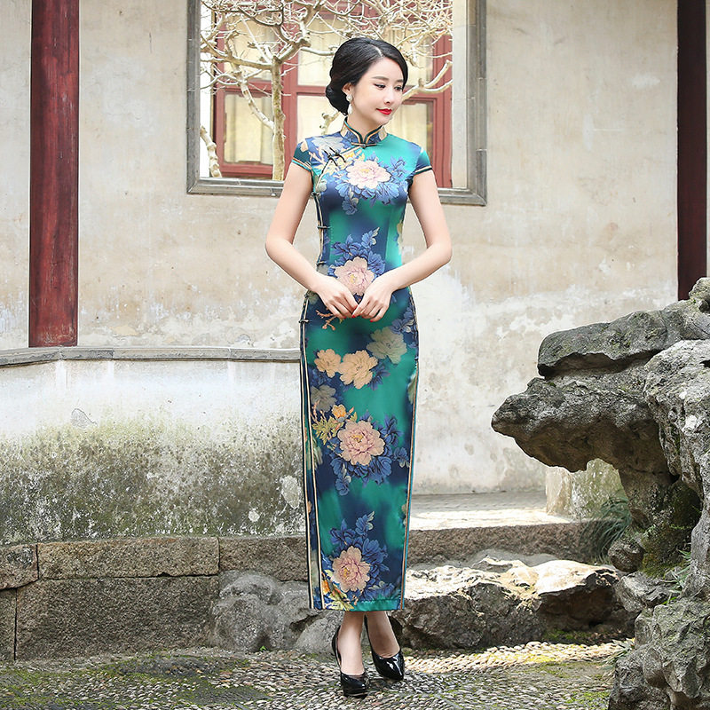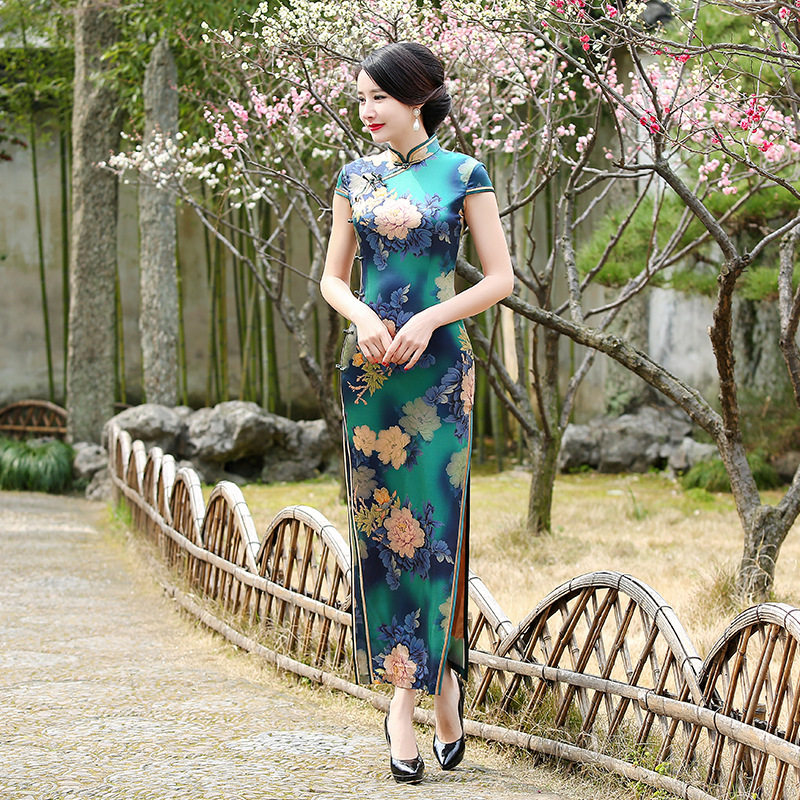 淘宝天青色等烟雨新中式旗袍梨形身材遮肉显胸画报夫人轻奢高级感妩媚