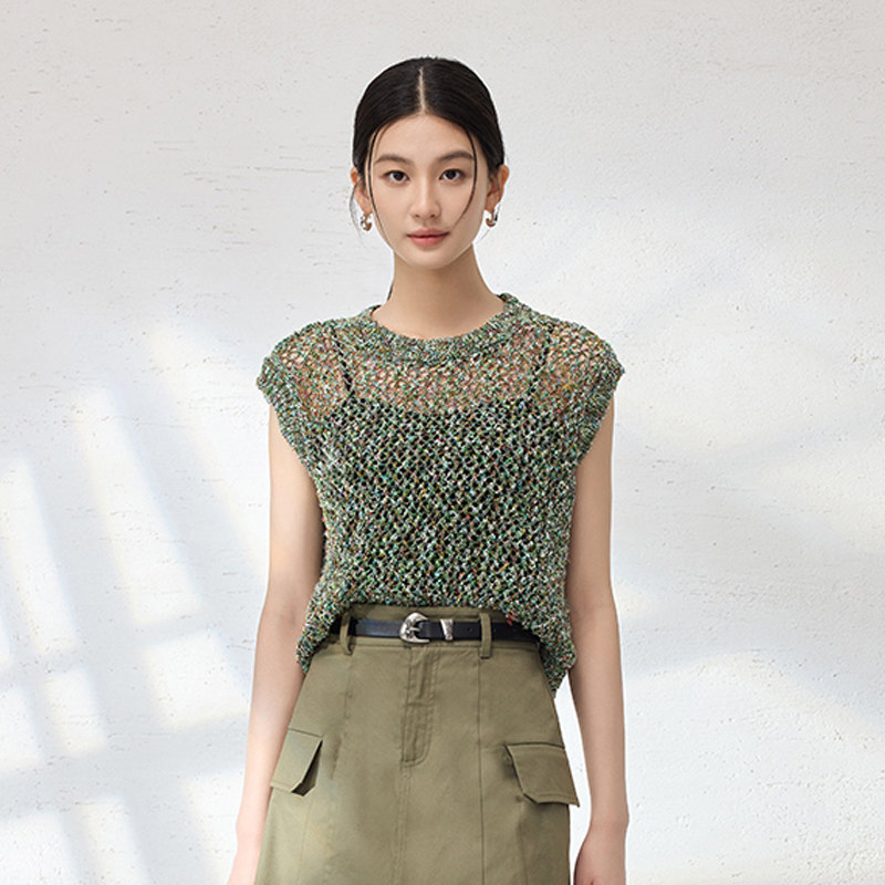 【时菲菲】商场同款夏季慵懒风镂空花纱针织上衣NDY4A52297