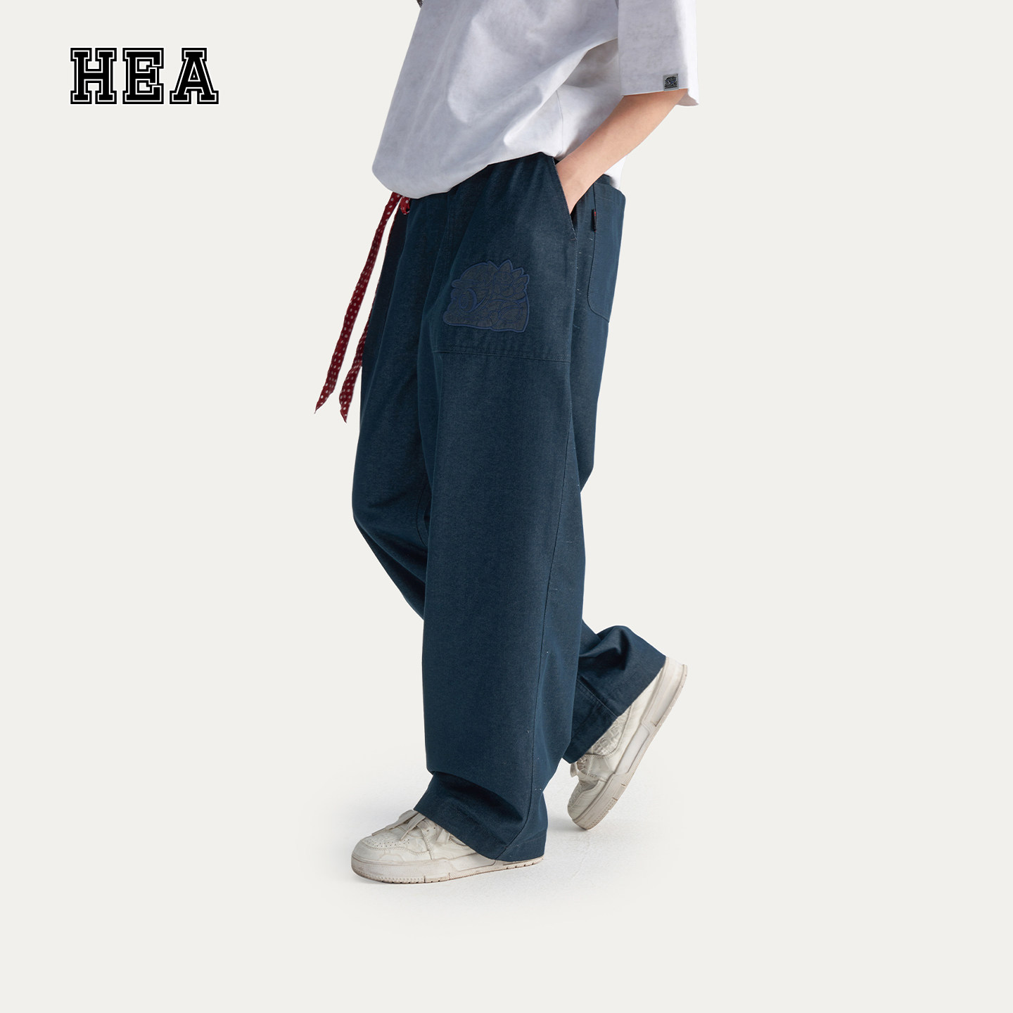 HEA 国潮醒狮仿牛仔休闲长裤男2026新款复古刺绣百搭宽松直筒裤子